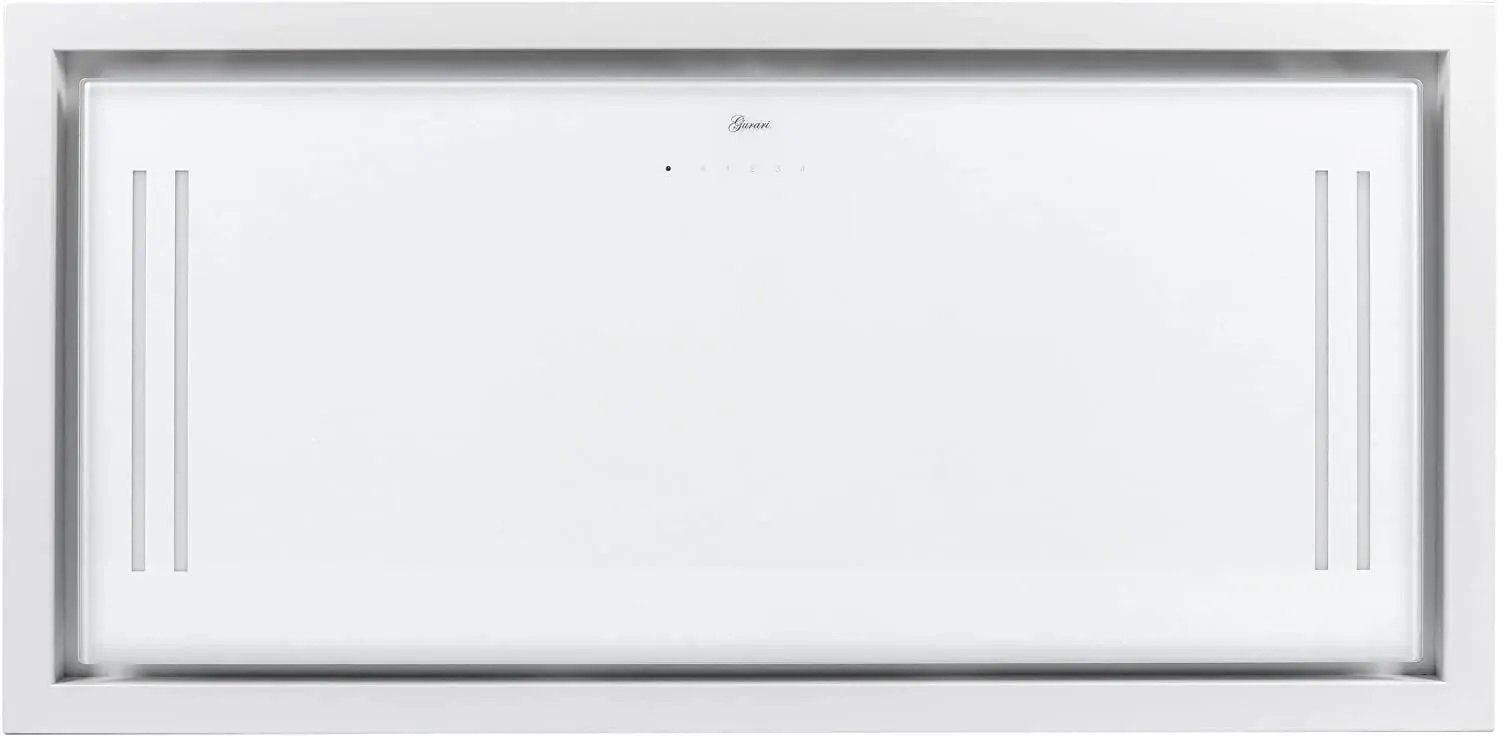 Luxus Umluft Deckenhaube mit Ionisierung in Weiß/ Weiß Glas Ausführung.