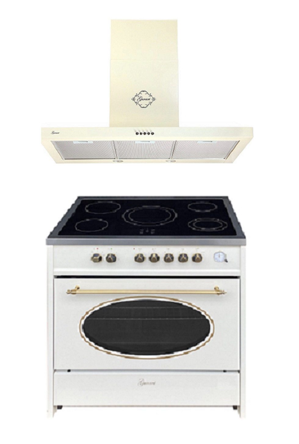 Elektro Standherd 90 cm Retro Line in Creme mit Glaskeramik Kochfeld