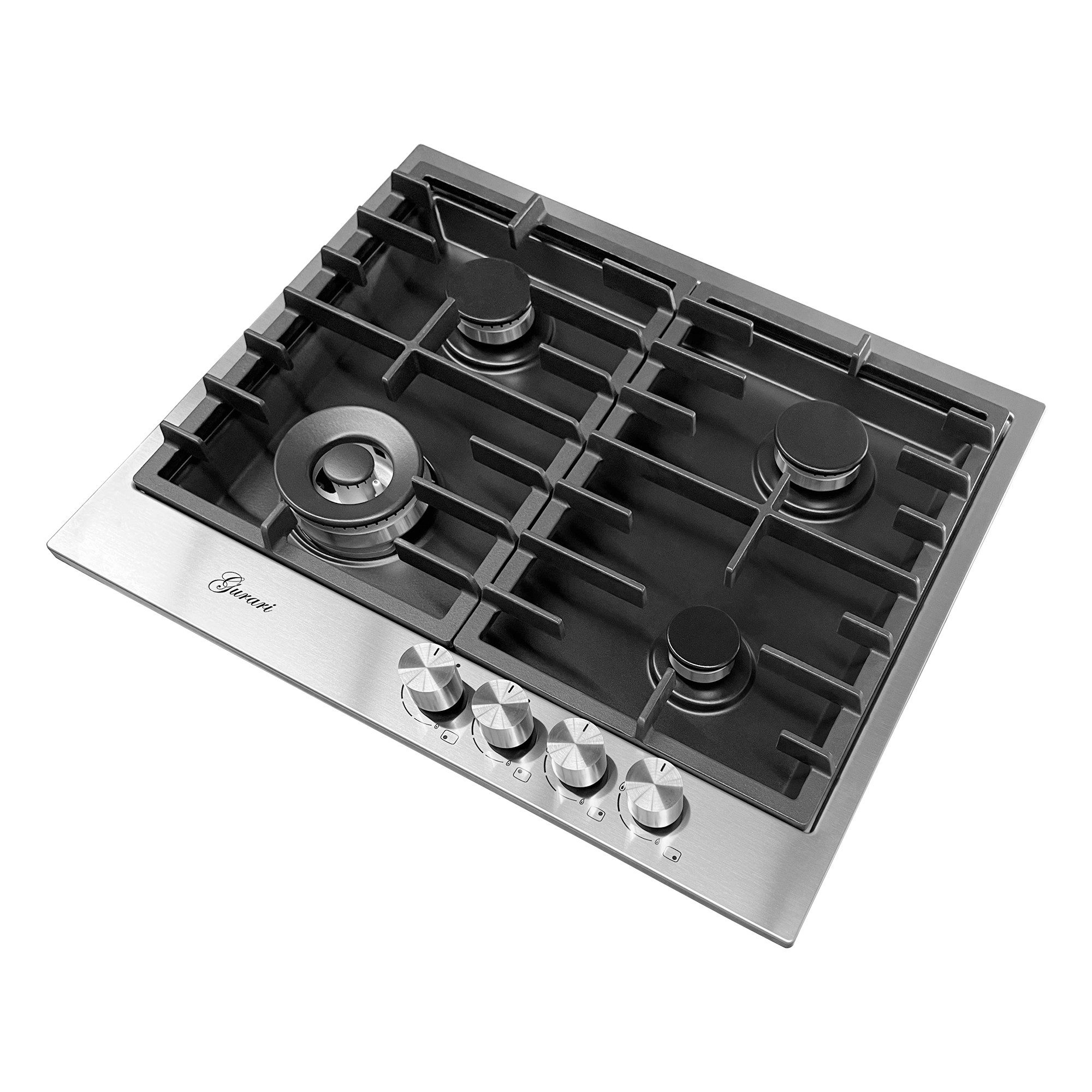 Entdecken Sie das Gurari TX604VTGL Gaskochfeld 60 cm, ein hochwertiges Einbaukochfeld aus Edelstahl mit innen emaillierter schwarzer Oberfläche – ideal für stilvolle und moderne Küchen.