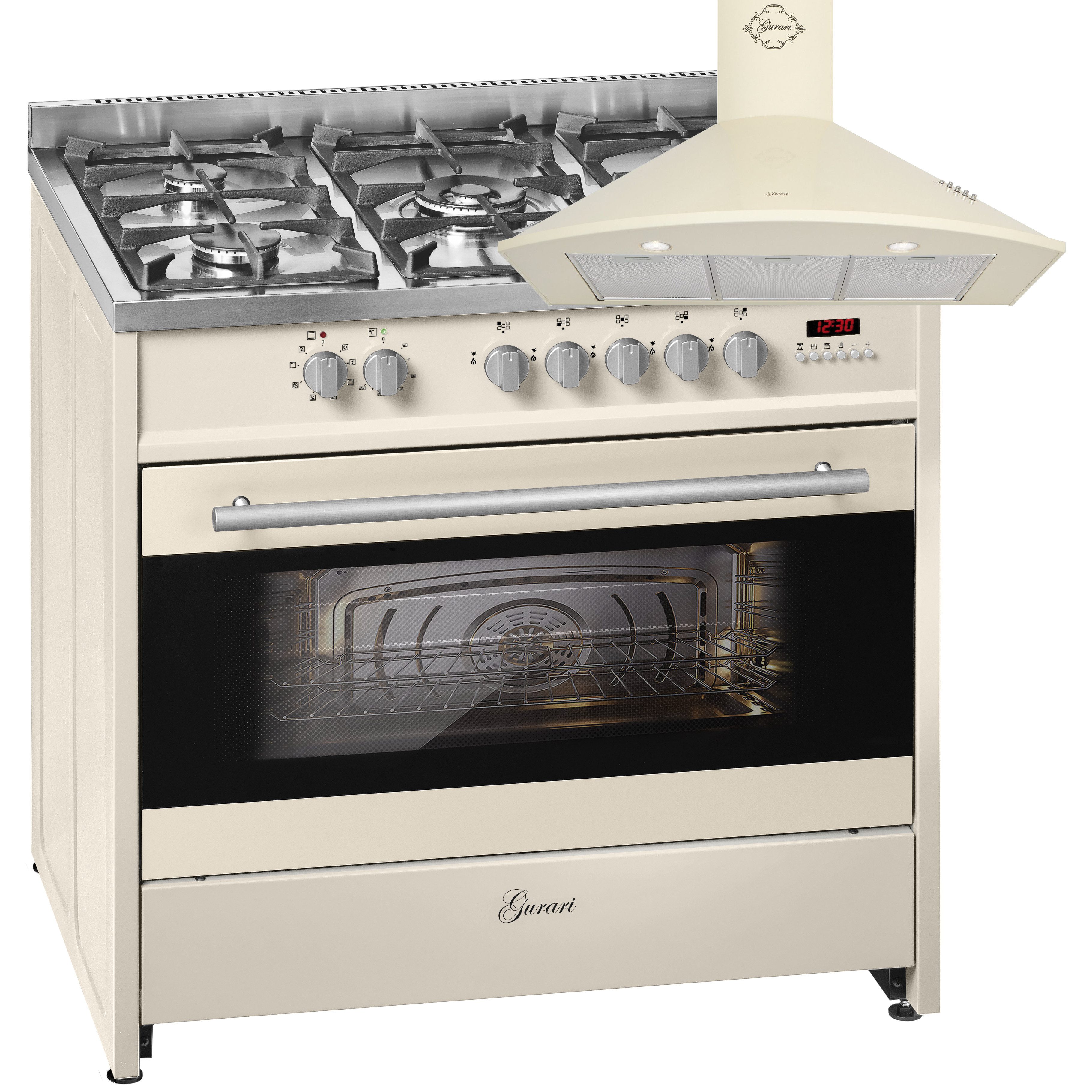Gas Elektro Standherd 90 cm in Creme