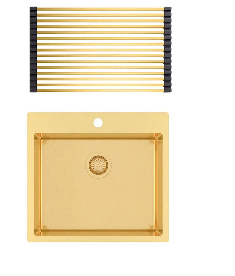 PVD-Beschichtung: Diese fortschrittliche Beschichtung verleiht der Spüle nicht nur ein glänzendes Gold-Finish, sondern schützt sie auch vor Kratzern und Flecken.