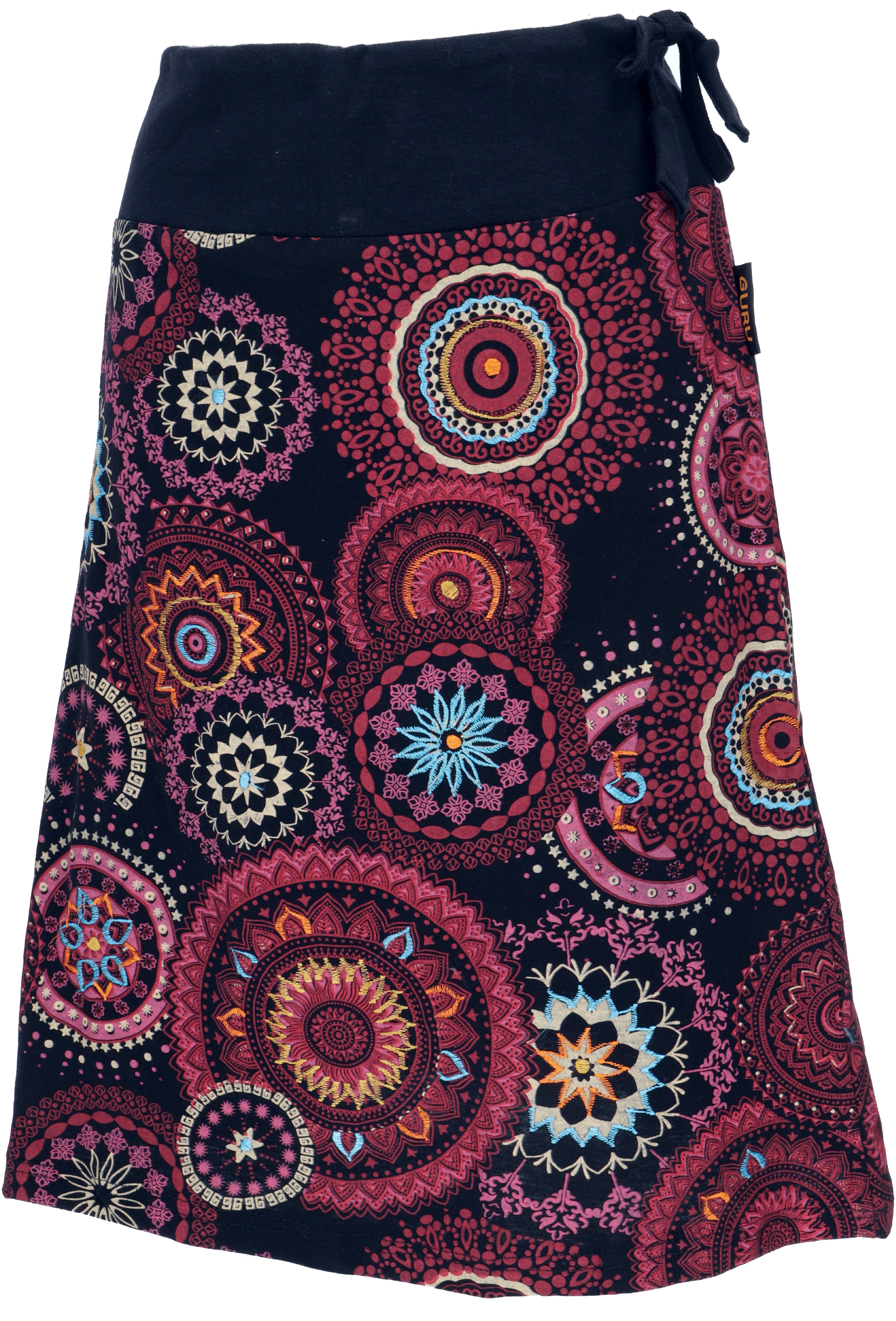 Bestickter knielanger Rock, Boho chic, Retro Mandala - pink