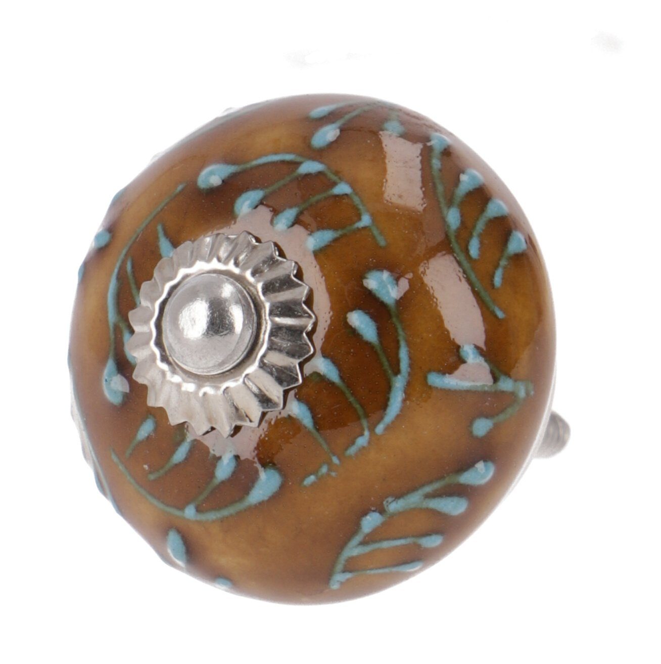 Handbemalter Möbelknopf aus Keramik mit Gewinde zum Montieren an Schubfächern oder Schränken.