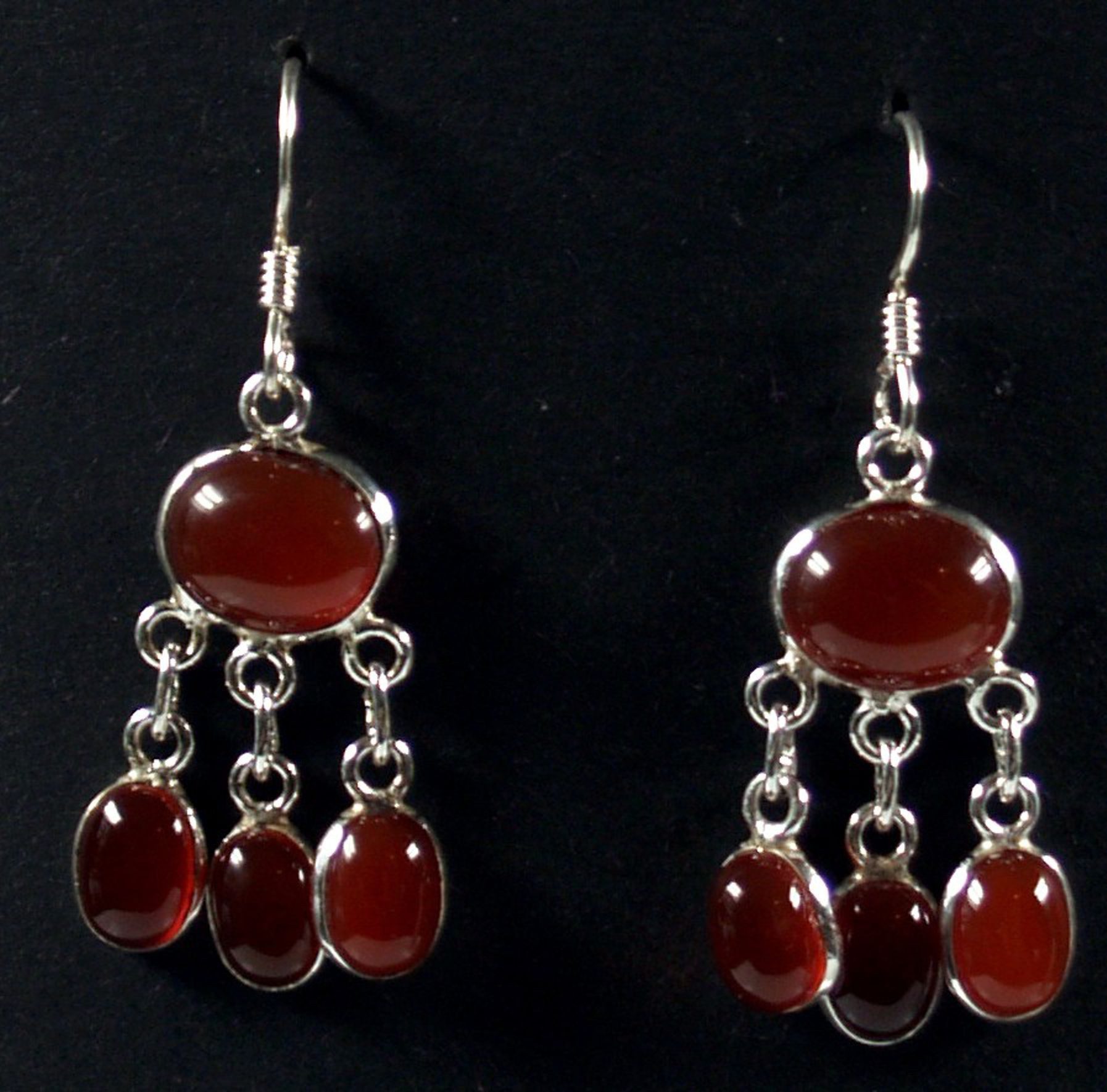 Filigrane Ohrringe mit in Silber gefasstem Karneol, vier schöne Steine und trotzdem superleicht.