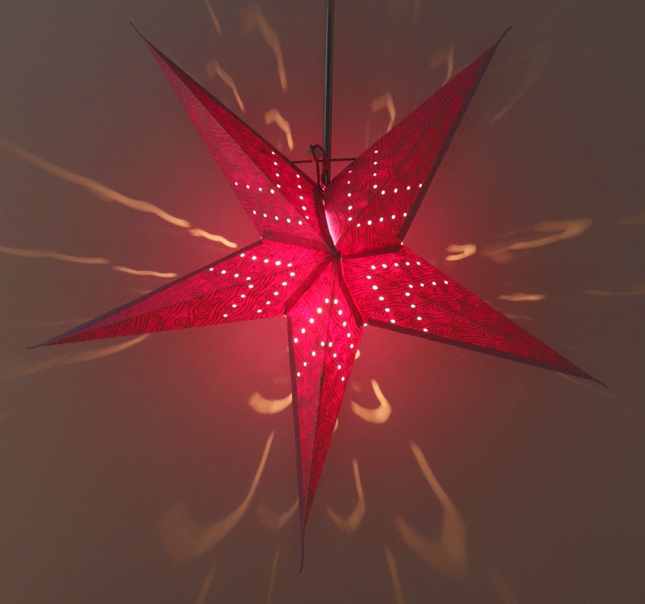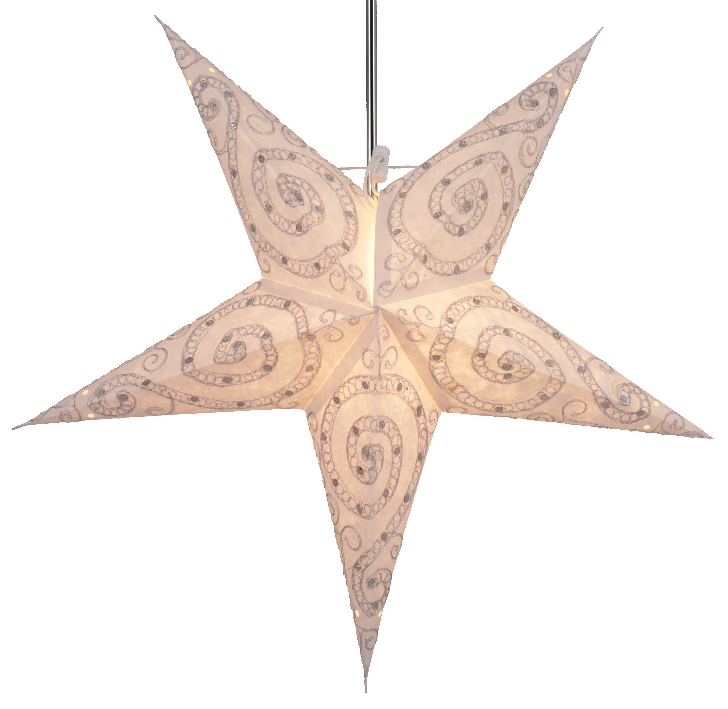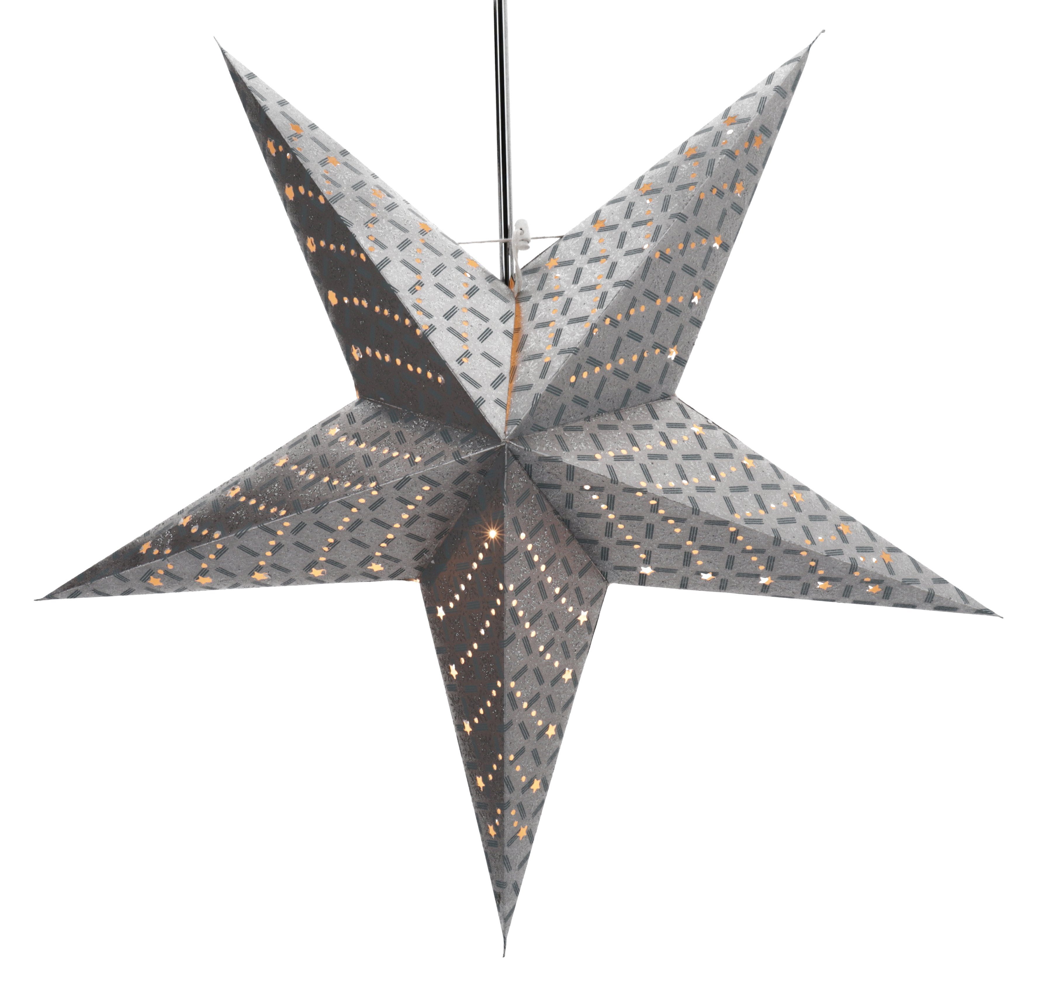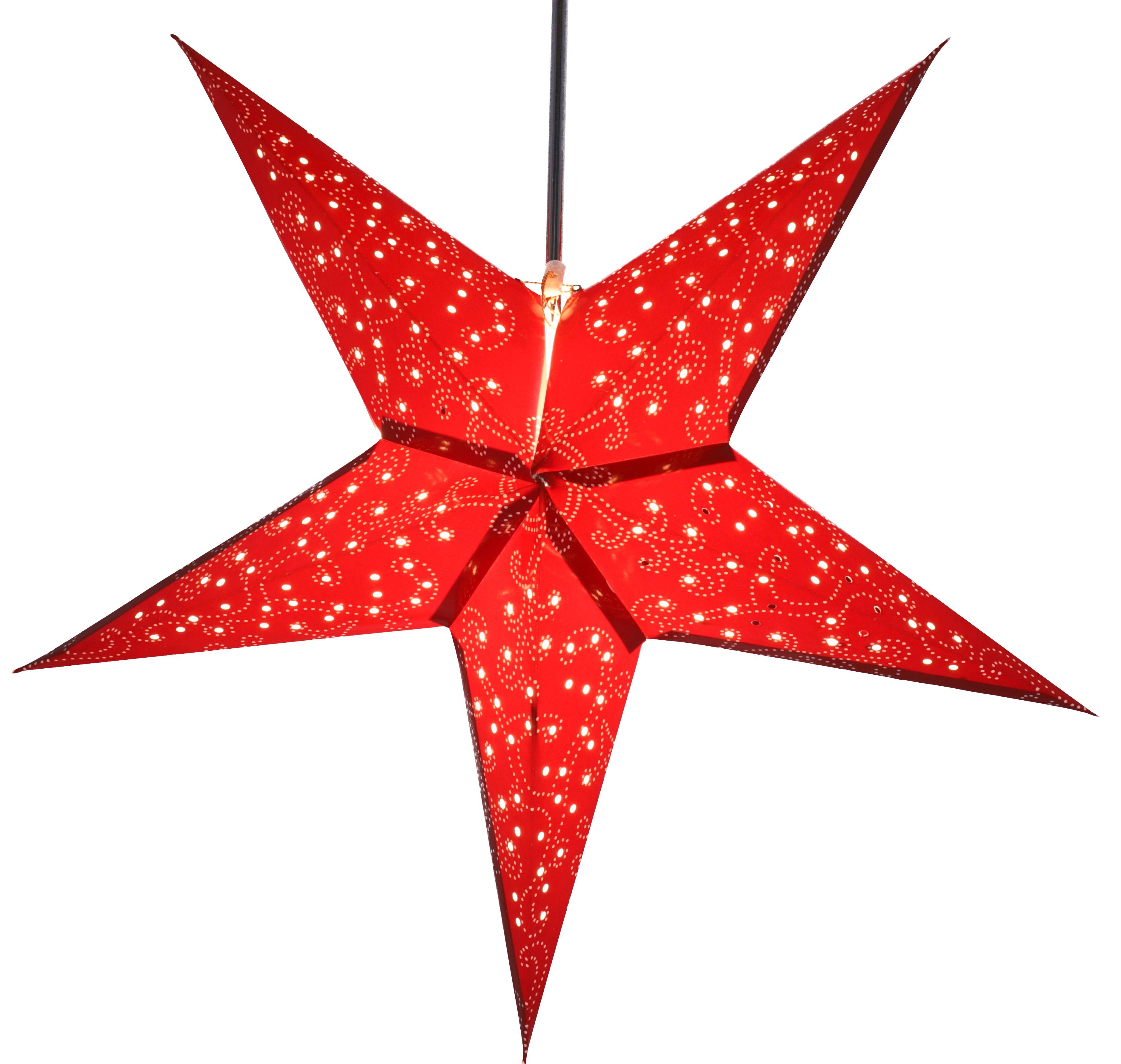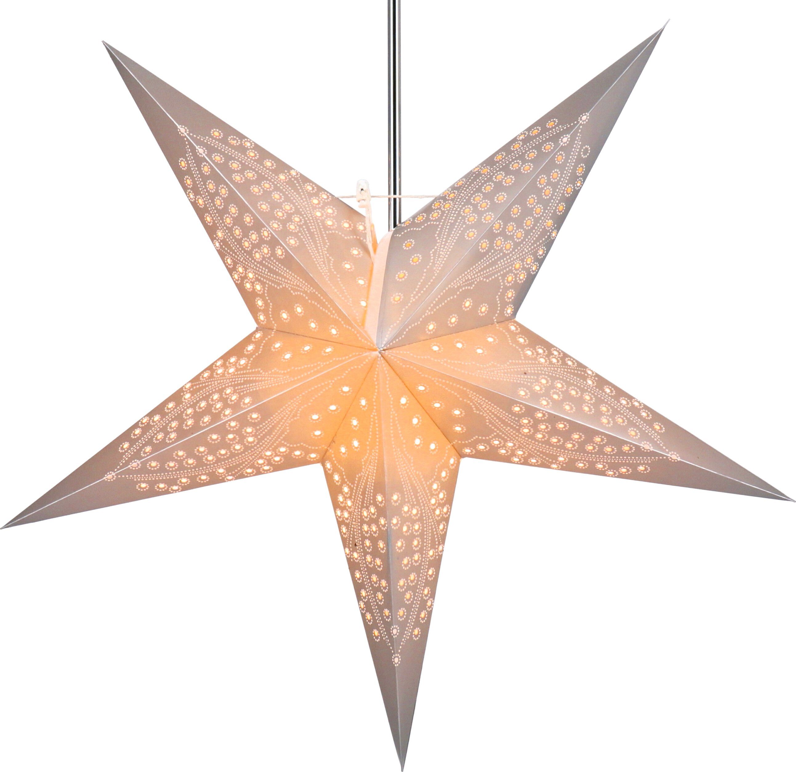 Dieser schöne Stern wirkt durch die fein ausgestanzten Punkte besonders schön und zaubert schöne Lichtstrukturen an die Wände. Diese Dekoleuchten werden aus verschiedenen hochwertigen Papieren handgefertigt. Sie entfalten ihren vollen Glanz erst in beleuchtetem Zustand, sind aber auch unbeleuchtet `Schmuckstücke`. Sie eignen sich als Fensterdeko ebenso wie zur stimmungsvollen Illuminierung jedes Wohnraums. Jeder Stern wird in einer Falthülle mit aufgedruckter Aufbauanleitung inkl. einem Glühbirnenabstandshalter geliefert und ist mit wenigen Handgriffen aufgebaut. Ein passendes Kabel findest du im Bereich Zubehör. Sicherheit: Unsere Sterne sind, inkl. dem Glühbirnenabstandshalter und der Zuleitung, geprüft.