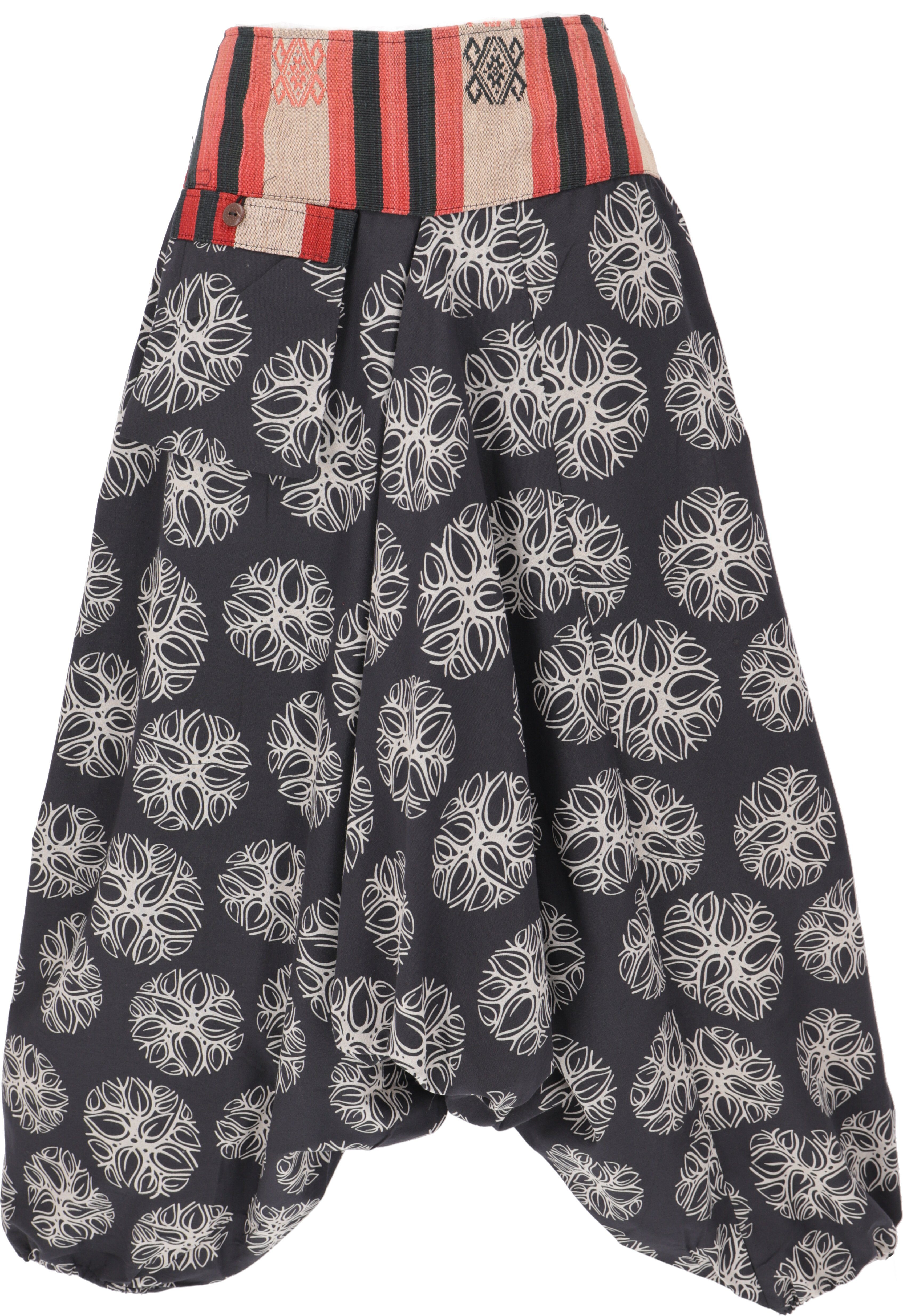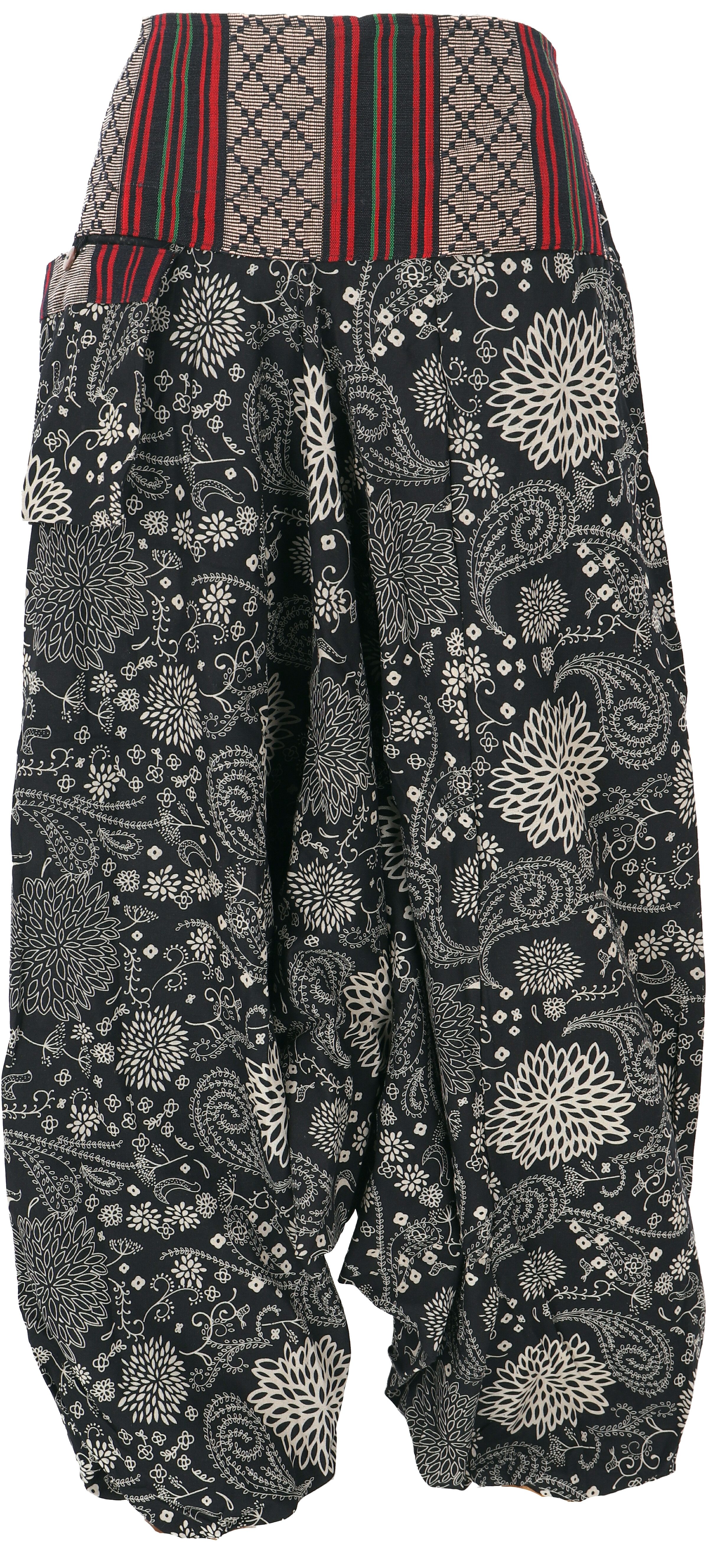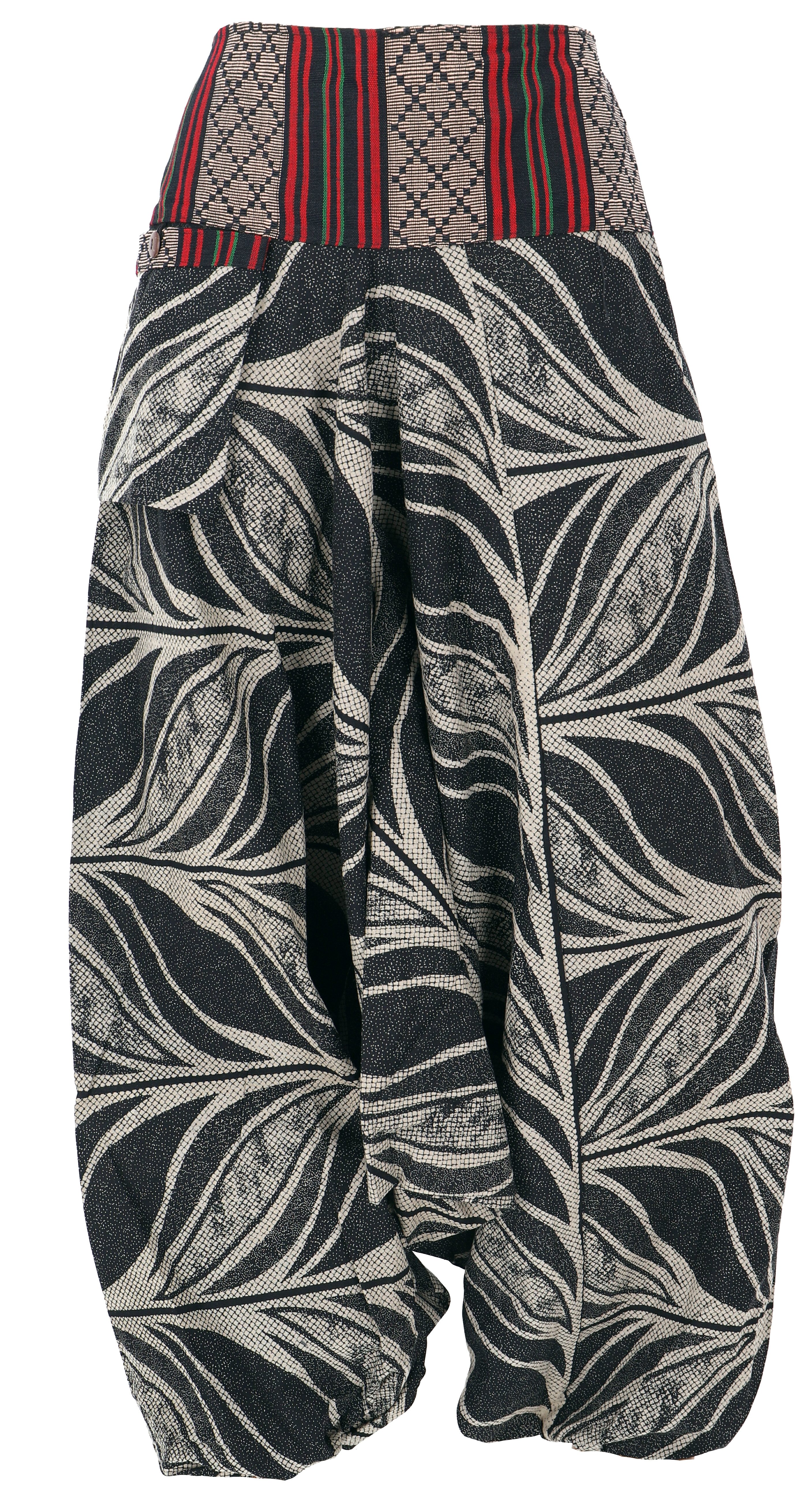 Bedruckte Haremshose, Pluderhose mit breitem gewebtem Bund - Modell 4