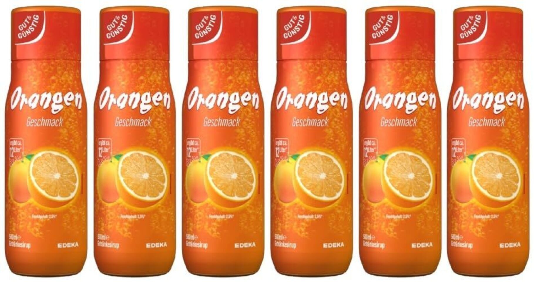 die leckere Orange zum selbst anrühren von Gut & Günstig aus einer Flasche machen Sie ca. 12 Liter Sirup enthält 6x500ml
