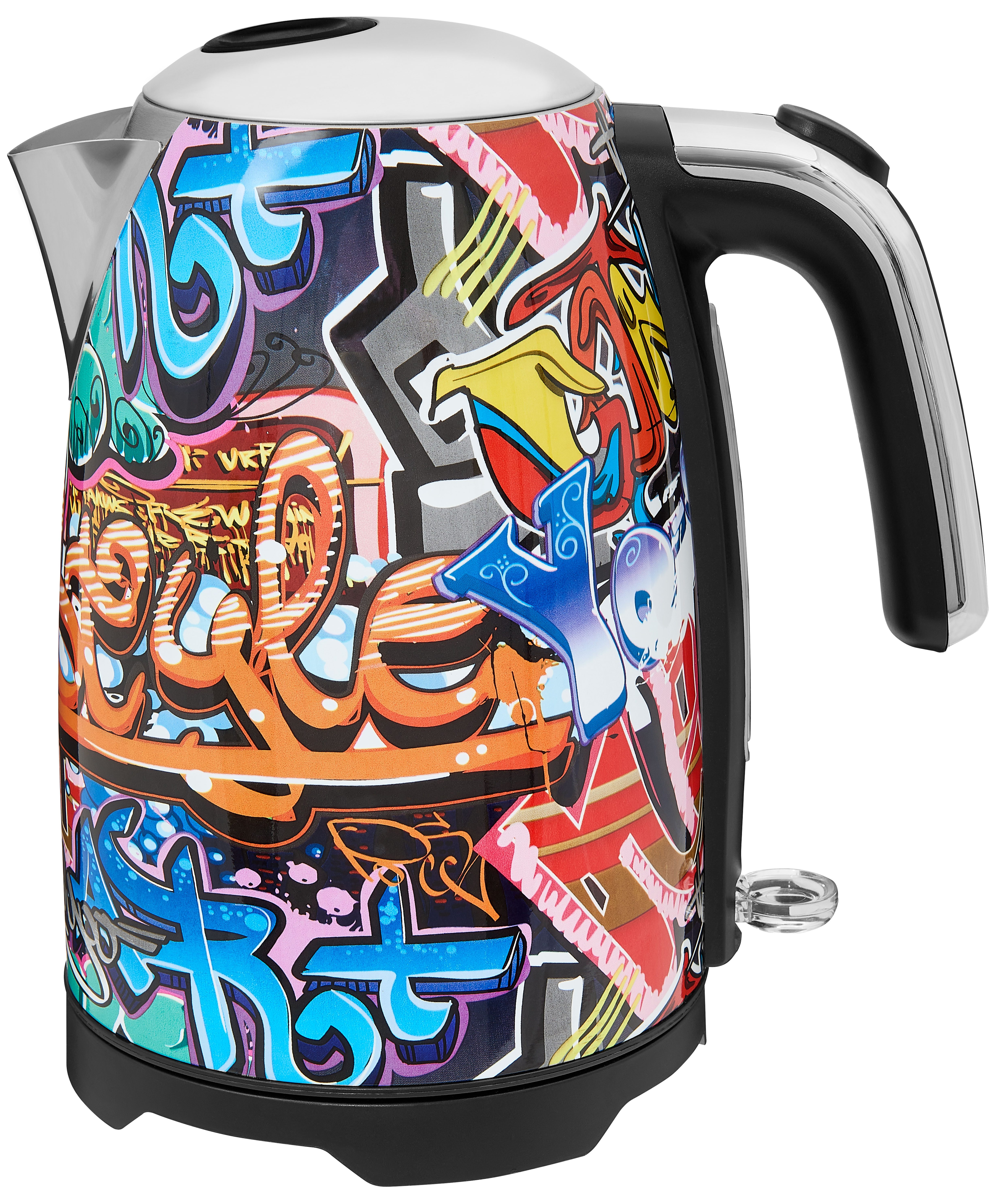 Впередe Vorteile | Der Graffiti-Stil bringt frischen, kreativen Look in jede Küche. Der Wasserkocher bietet eine Wasserstandsanzeige für präzise Füllmengen, einen Überhitzungs- und Trockenlaufschutz sowie eine automatische Abschaltung für zusätzliche Sicherheit. Die verdeckte Heizung sorgt für eine einfache Reinigung und schützt vor Kalkablagerungen. Der ergonomische Griff ermöglicht eine komfortable Handhabung. Mit 2200 Watt kocht der Wasserkocher schnell und spart Energie durch schnelle Erwärmung. Robustes Design sorgt für Langlebigkeit und Stabilität. |
