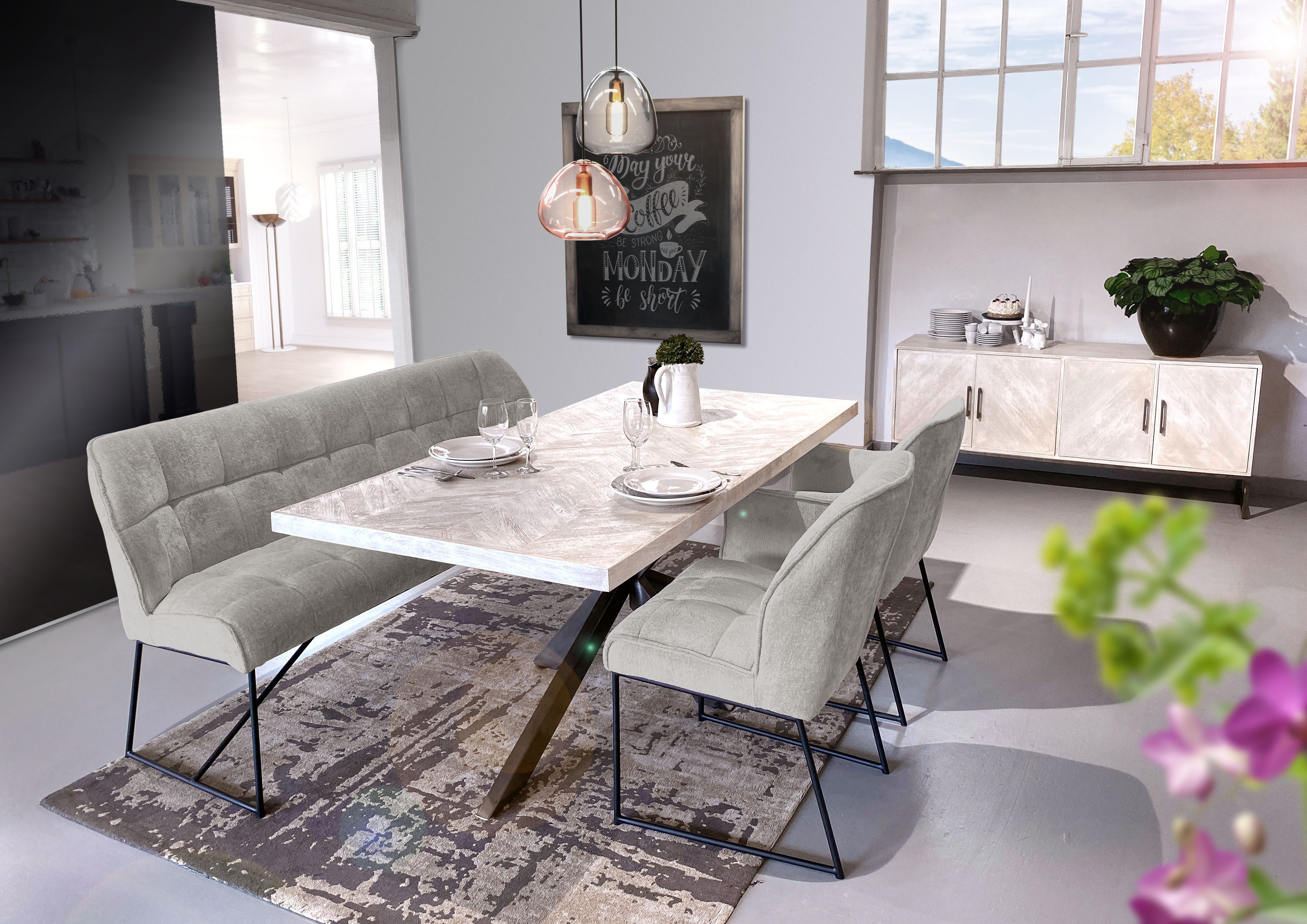 Mit diesem Esszimmerstuhl von Gutmann Factory kommst du der Wohlfühl-Atmosphäre wie in deinem Lieblings-Restaurant einen Schritt näher. Die maximale Belastbarkeit liegt bei einem Gewicht von 120 Kilogramm.