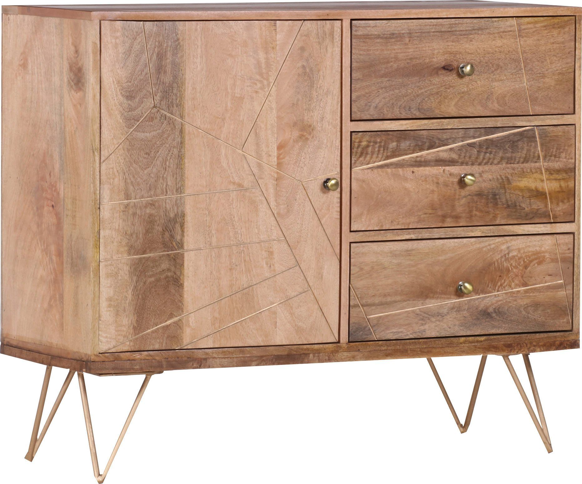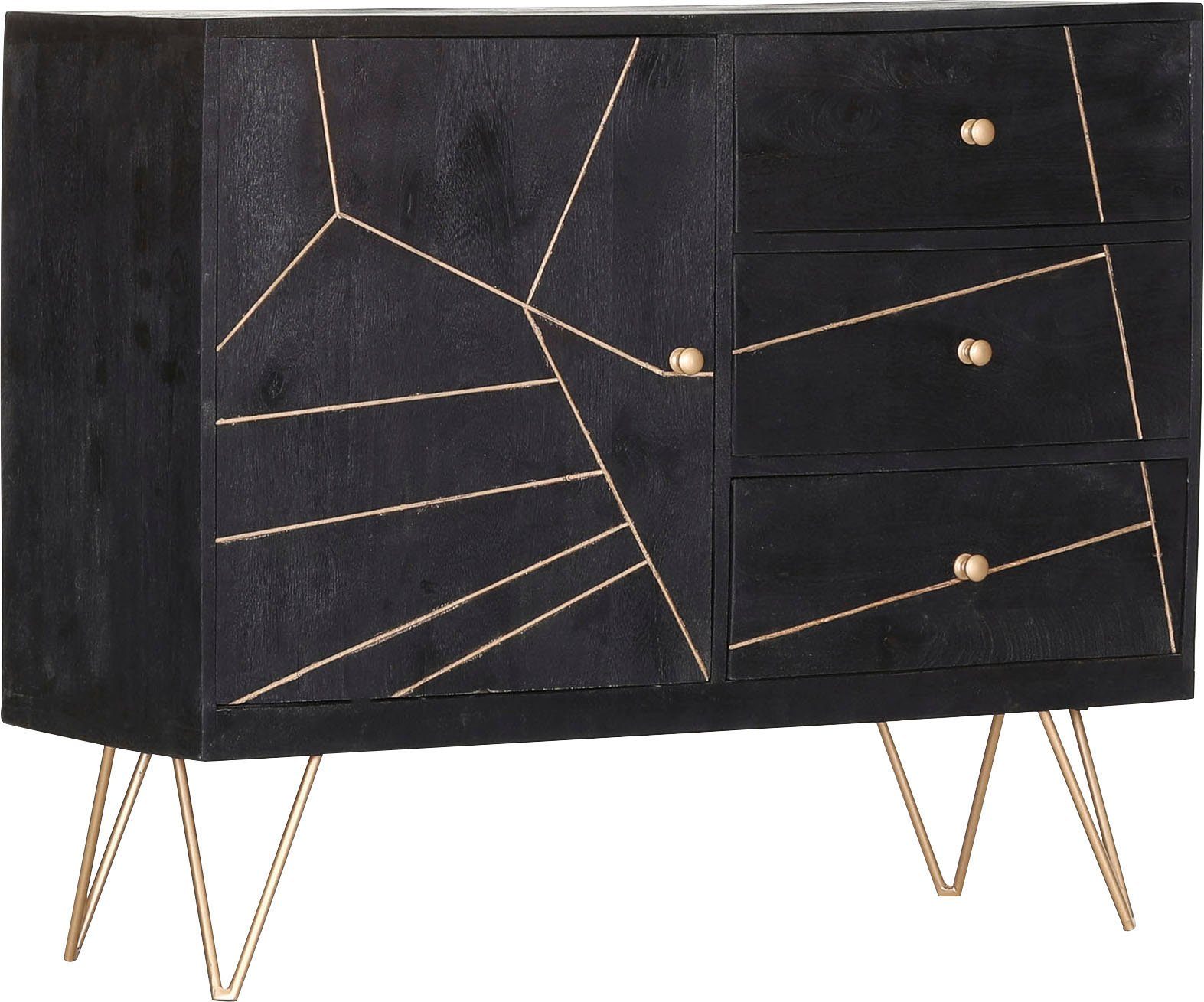 Diese Kommode von Gutmann Factory aus Massivholz punktet mit schöner Optik und Langlebigkeit. Für einen tollen optischen Effekt und einen besseren Schutz der Oberfläche sorgt der aufgetragene Lack. Die einfachen Knopfgriffe aus Metall sind stabil und nutzen sich daher nicht so schnell ab.