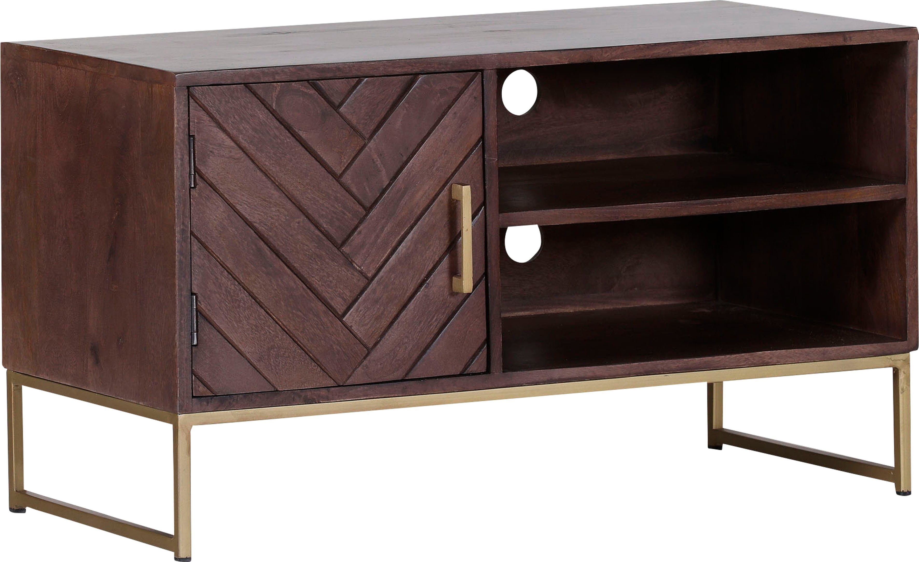 Wissenswertes | Mango massiv, braun gebeizt und lackiert; Fußgestell und Griffe:Metall, goldfarben lackiert |