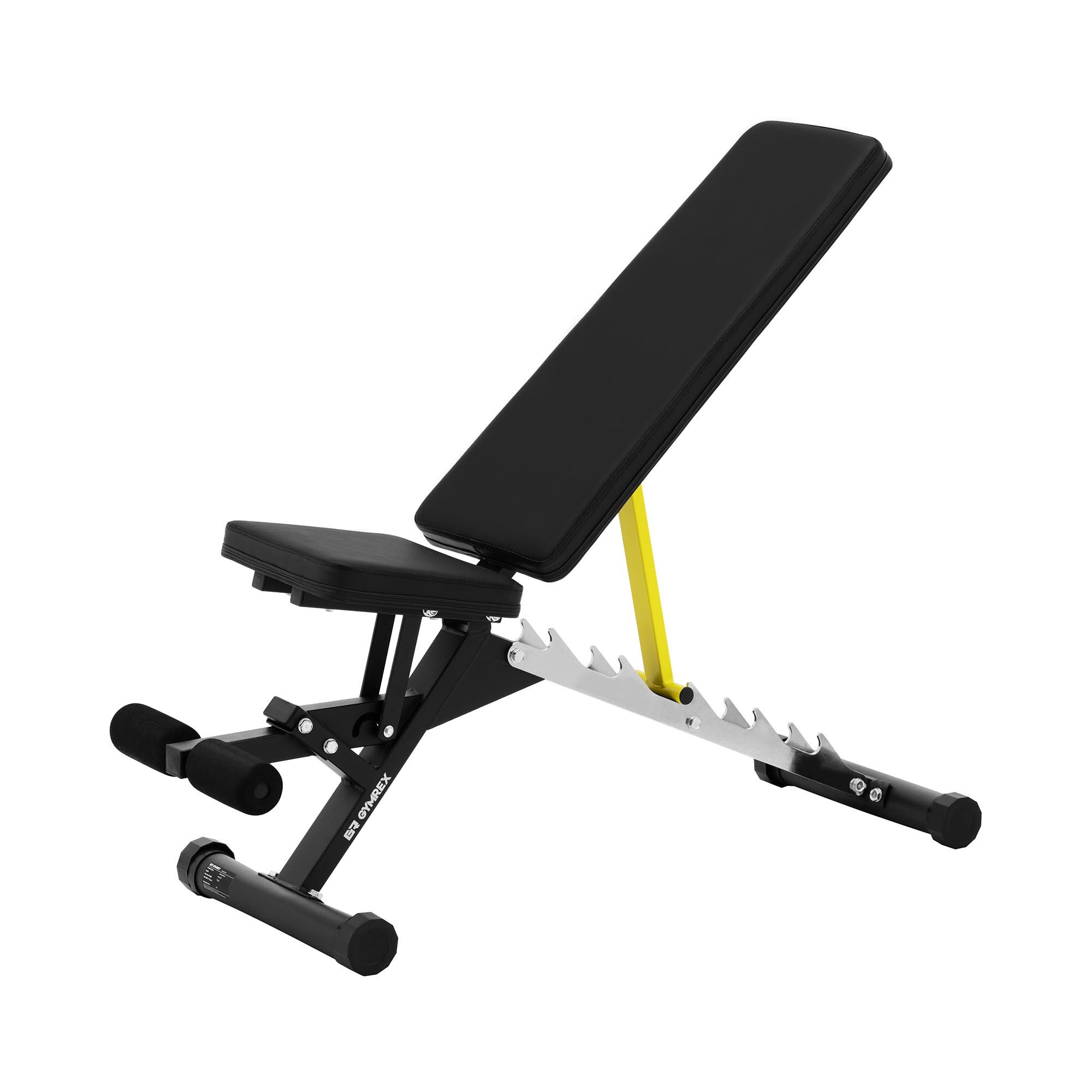 Ob Fliegende mit Kurzhanteln, Seitenheben oder Kurzhantel-Rudern: Mit der Schrägbank von Gymrex führen Sie viele verschiedene Übungen aus. Stellen Sie die Bank auf Ihre persönlichen Bedürfnisse ein – die Rückenlehne wie auch der Sitz sind im Neigungswinkel verstellbar.