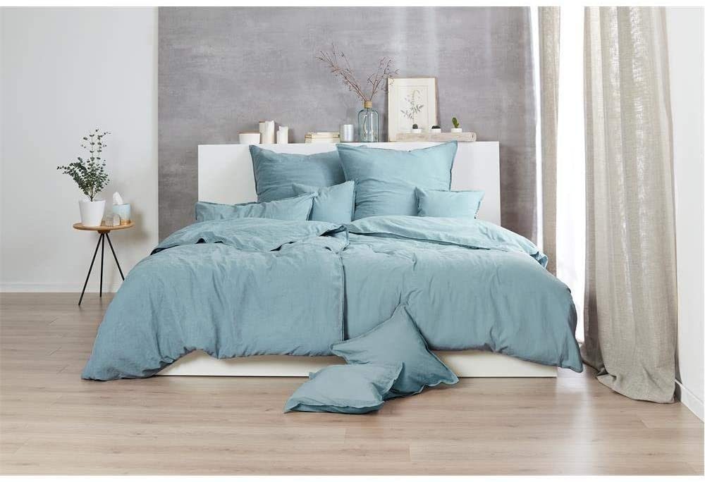 HAHN Stone-Washed-Bettwäsche, 3-teilig, bestehend aus: 1 x Bettbezug 240/220 cm, 2 x Kissenbezug 80/80 cm, 100% Baumwolle, Renforcé Qualität, hochwertiges Naturprodukt, natürlich atmungsaktiv, weicher Griff, glatte Oberfläche, einzigartige Waschung: "Jede Garnitur ein Unikat" mit Reißverschluss. Waschbar bis 60°C, trocknergeeignet.