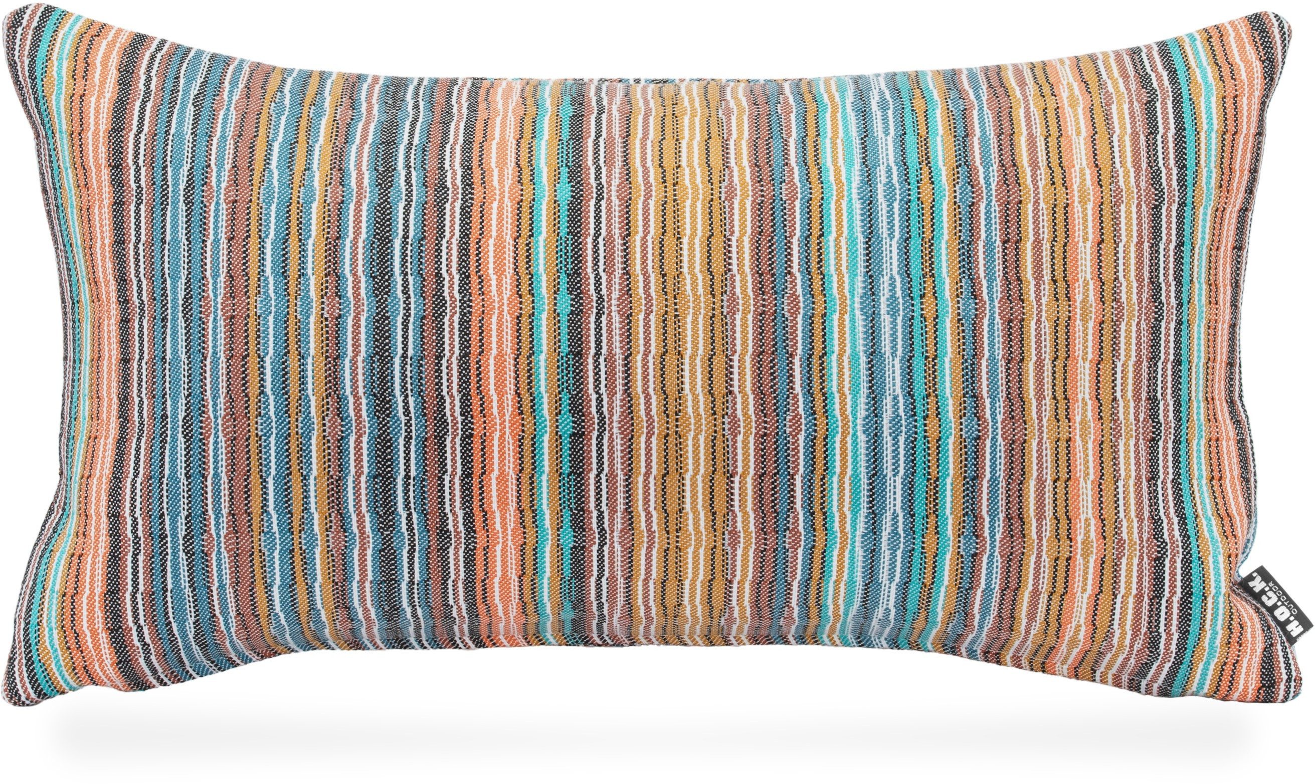 Fröhliche bunte Outdoor-Kissen mit dem klangvollen Namen Casabella bestechen durch frisches und lässiges Design. Für alle die es unkonventionell und ein bisschen marokkanisch mögen. Durch die grobe Webstruktur und den fröhlich bunt verwebten Garnen in Farben wie: grün, aqua, orange, braun, terra & weiß entsteht ein raffinierter Streifenlook, mit dem man unzählige Unis ganz harmonisch miteinander kombinieren kann. Diese verspielten Elemente verleihen dem Outdoor-Dekokissen eine lebendige Note. Ob auf der Terrasse, dem Balkon oder im Garten - dieses Outdoor-Kissen bringt Qualität und Style in Ihre Umgebung. Handgefertigt in Deutschland ist das Outdoor-Dekokissen Casabella ein echter Blickfang in jedem Außenbereich. Sie sind sich noch unsicher? Lassen Sie sich von den wetterfesten Eigenschaften des Outdoor-Dekokissens überzeugen: Wasser- und schmutzabweisend: Durch den speziell ausgerüsteten Bezugsstoff ist das Outdoor Dekokissen sowohl wasser- als auch schmutzabweisend. Das bedeutet, dass bei leichtem und auch mittel-starkem Regenschauer, das Wasser nicht sofort durch das Material dringt, sondern abperlt. Auch bei einem Starkregen bzw. Dauerregen, können die Kissen draußen bleiben. In der Sonne trocknen Sie sehr schnell. Lichtecht 7 von 8: Mit einem hohen Lichtechtheitswert von 7 von 8 behält das Outdoor-Dekokissen seine strahlenden Farben, selbst bei intensiver Sonneneinstrahlung. Die UV-Wert - Skala reicht bis maximal 8, sodass man sicher sein kann, dass selbst bei extrem starker Sonneneinwirkung es nur zu einem unmerklichen verblassen kommen kann. Schimmelresistent: Die antibakterielle Ausrüstung des Bezugsstoffes sorgt dafür, dass das Outdoorkissen auch bei feuchtem Wetter in Topform bleibt und Schimmelbildung effektiv vorgebeugt wird. Praktischer Reißverschluss und pflegeleicht: Durch den verdeckt angebrachten Reißverschluss, ist der Bezug einfach abnehmbar und lässt sich bei 30°C problemlos in der Waschmaschine waschen. Bezugsstoff Ökotex-Standard 100: Der Bezugsstoff ist Ökotex-Standard 100 zertifiziert, was höchste Sicherheit gewährleistet. Hochwertige Füllung: Die Füllung besteht aus einer hochwertigen komfortablen silikonisierten Polyesterhochbauschvliesfüllung. Diese angenehme Füllung hat einen hohen Rückstellwert und sorgt so für ein gemütliches Gefühl beim Anlehnen und kommt auch nach langer Beanspruchung wieder in die ursprüngliche Form zurück. Diese Füllung ist sowohl drinnen als auch draußen einsetzbar. Wenn Sie ein Outdoor-Dekokissen suchen, das qualitativ hochwertig und pflegeleicht ist, dann ist das Outdoor-Dekokissen Casabella die perfekte Wahl für Sie. Verleihen Sie Ihrem Außenbereich eine einladende Atmosphäre und genießen Sie die Kombination aus Komfort und Style!