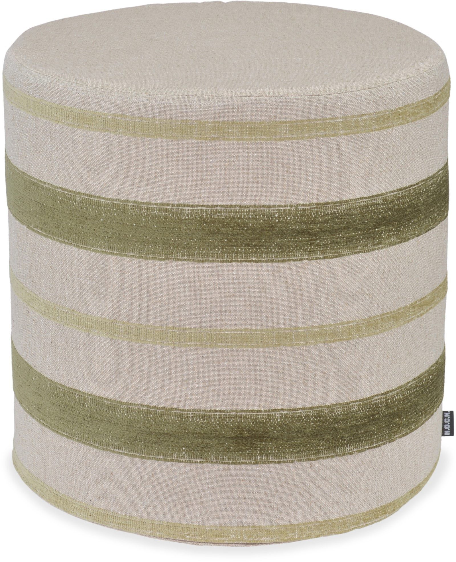 Der Leinenstoff mit weichen Chenille-Streifen verleiht dem Hocker eine besonders angenehme Haptik und strahlt gleichzeitig Qualität und Stabilität aus.