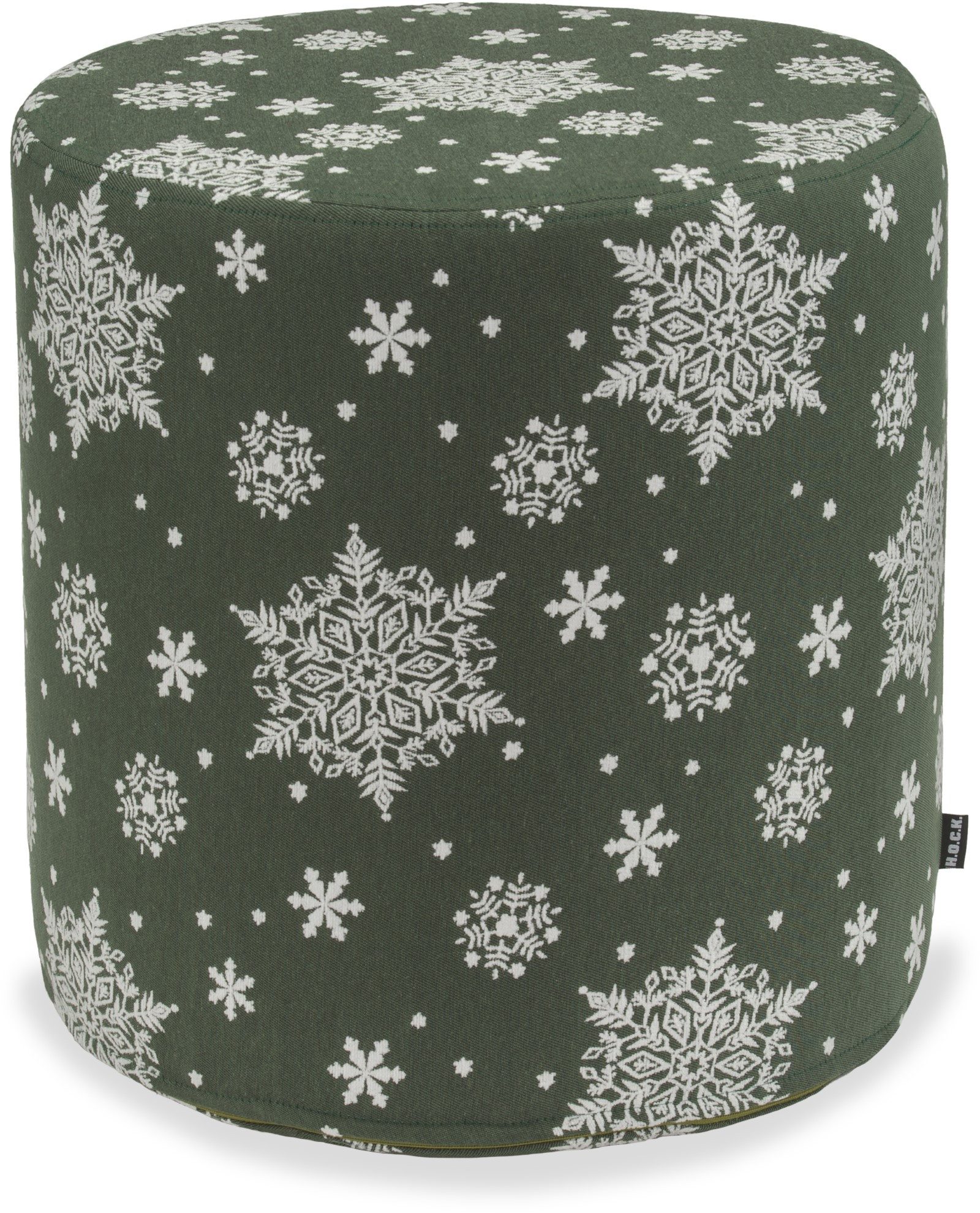 Verleihen Sie Ihrem Wohnraum eine elegante Note mit diesem wunderschönen runden Hocker in Tannengrün mit Schneeflockenmotiv. Bestellen Sie noch heute und genießen Sie den Komfort und die festliche Stimmung, die er in Ihr Zuhause bringt!