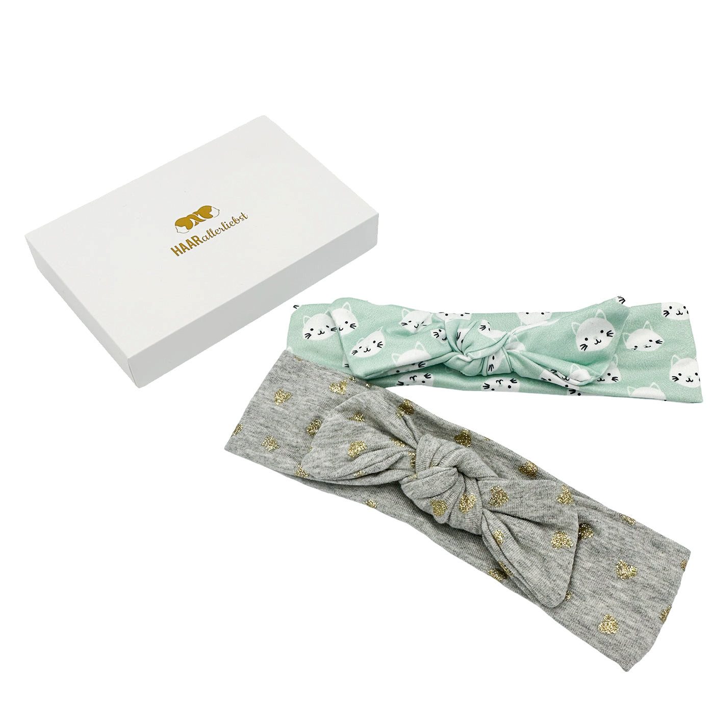 HAARBAND SET, MINTGRÜN UND GRAU, 2 STÜCK
