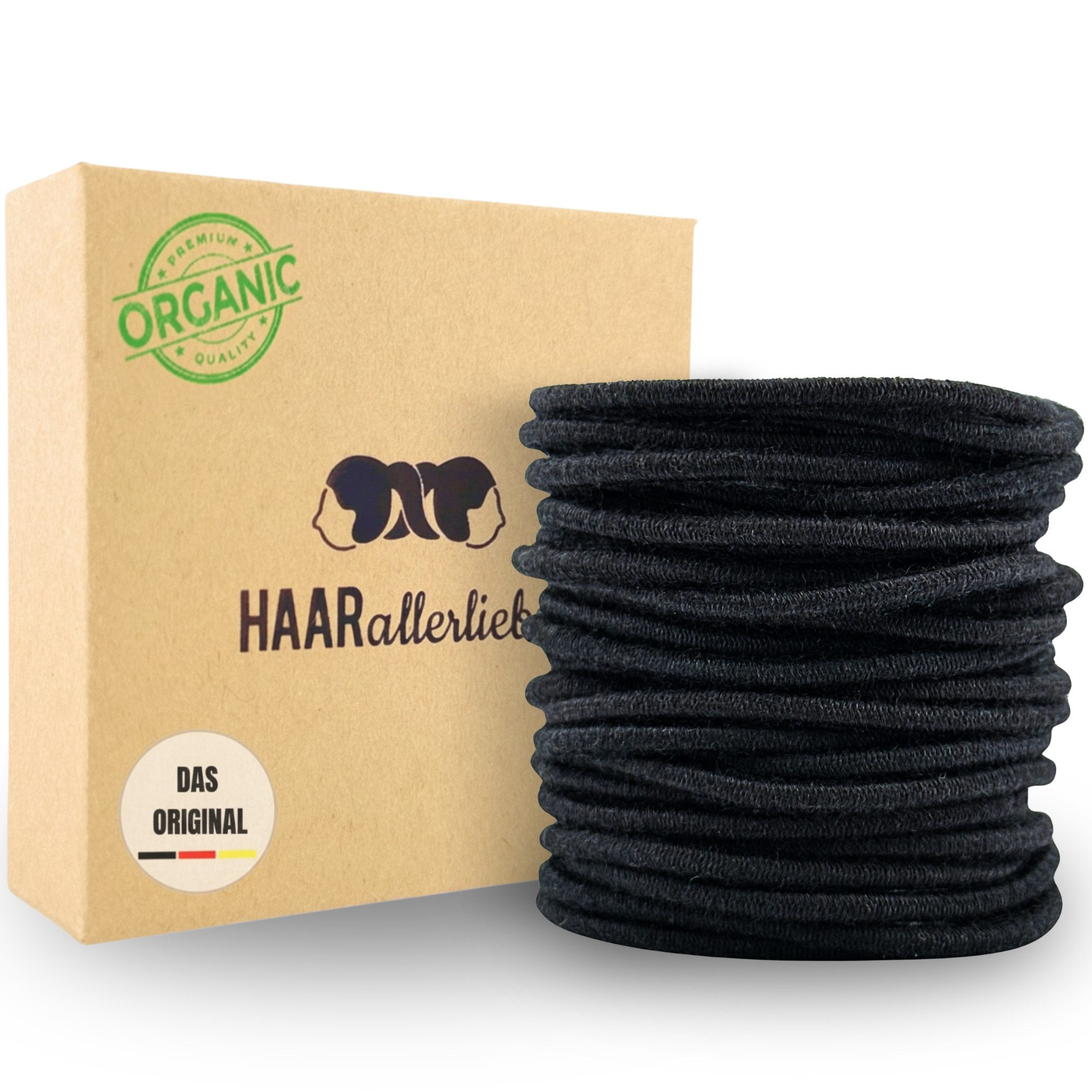 Эко-товарe Materialien – Unsere Haargummis bestehen aus Bio-Baumwolle und Naturkautschuk – ein bewusster Beitrag zu Umwelt und Haarpflege.