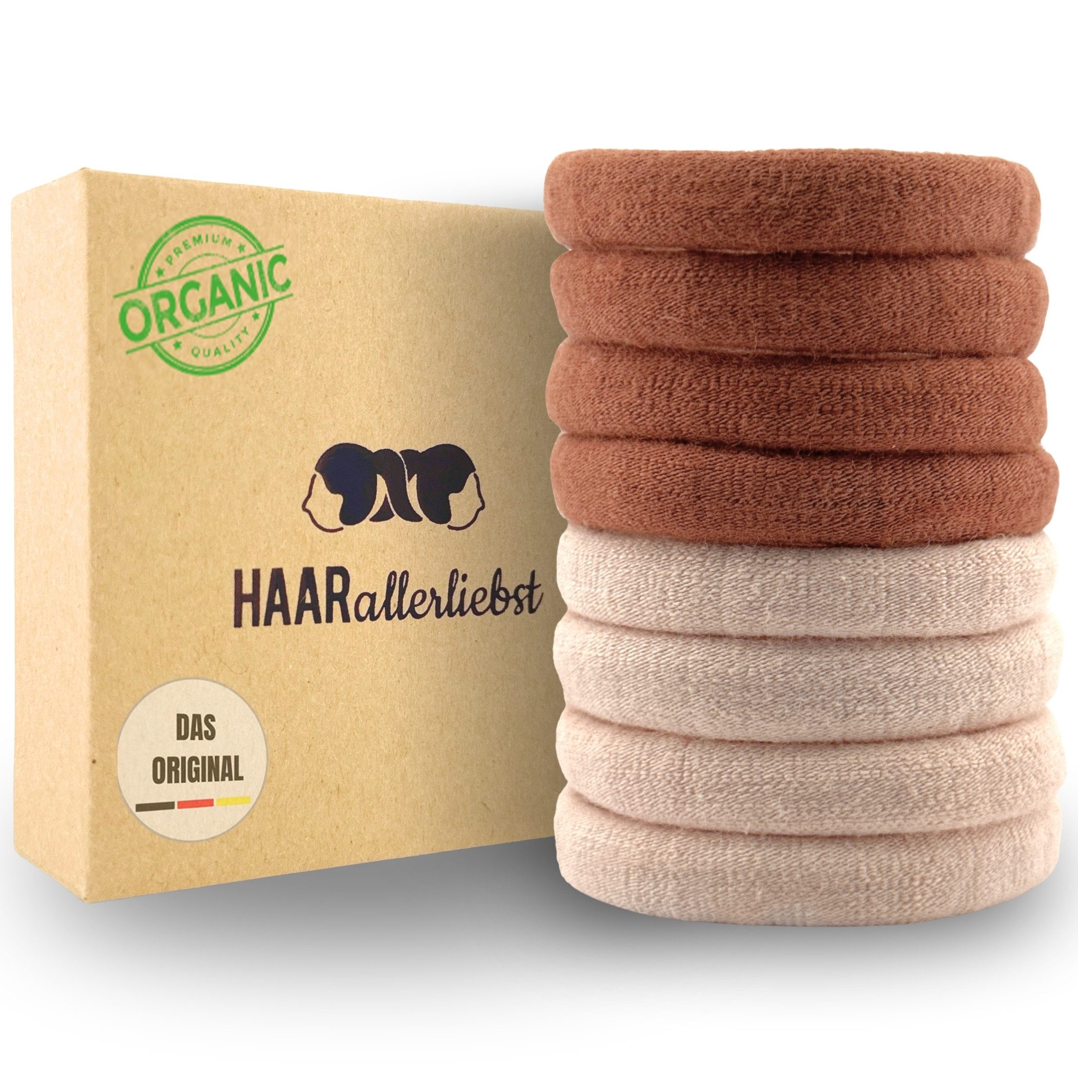 Entdecke die schonenden Haargummis von Haarallerliebst – die perfekte Kombination aus Komfort, Stil und Эко-товары. Unsere haarschonenden Haargummis bestehen aus Bio-Baumwolle und Naturkautschuk und sind damit besonders sanft zu deinem Haar – ganz ohne Metall oder störende Nähte. Ob Zopf oder Pferdeschwanz: Diese Haargummis ohne Haarbruch bieten dir starken Halt und schonen gleichzeitig feines oder dünnes Haar. Ideal als Haargummis für jedes Haar und bei empfindlicher Kopfhaut. Die dezenten Naturfarben wie Schwarz, Braun oder Beige passen sich jedem Outfit an – alltagstauglich und stilvoll zugleich. Du möchtest lange etwas von deinem Set haben? Einfach kurz aufkochen und die Gummis ziehen sich wieder zusammen – für eine besonders lange Lebensdauer. Schluss mit klassischen Bobbles, die ziepen oder ausleiern – entscheide dich für unsere nachhaltige Bio Alternative. Die Lieferung erfolgt natürlich in der Öko Box – weil uns nicht nur dein Haar, sondern auch die Umwelt am Herzen liegt.