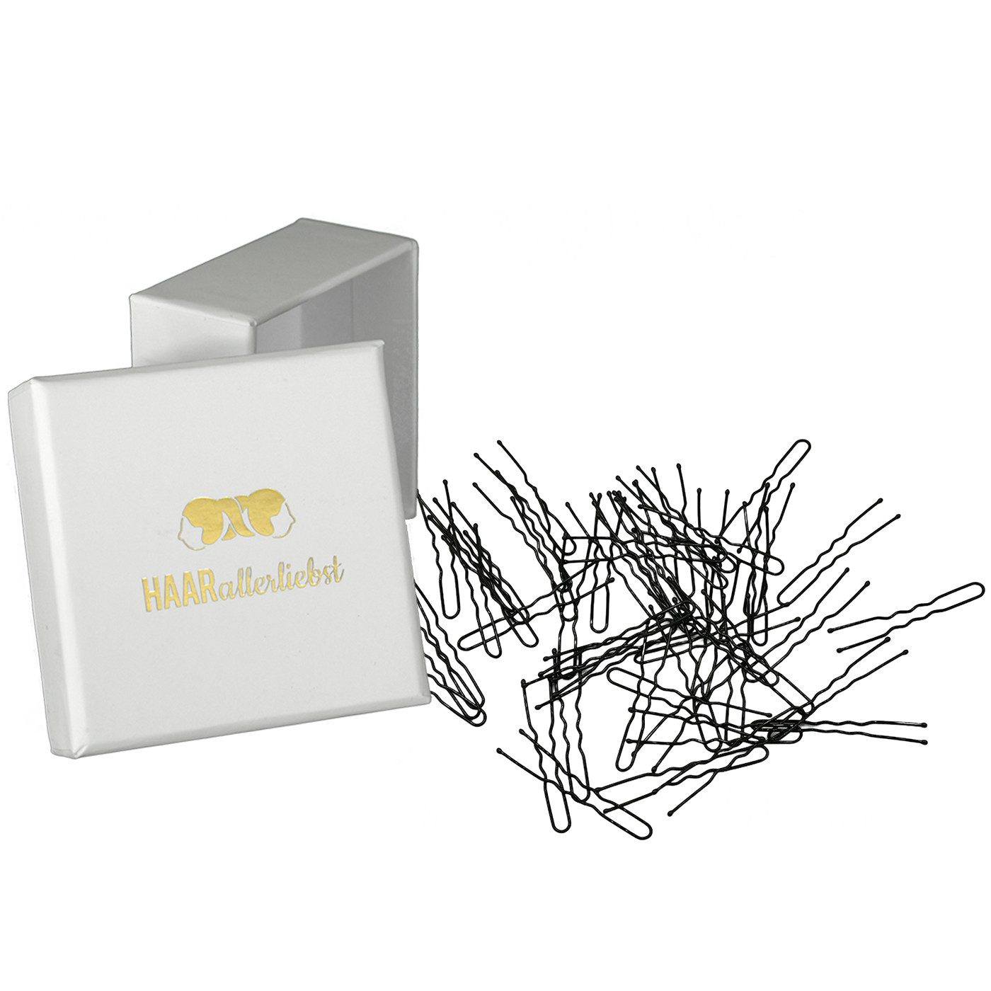 Anwendung | Eine Haarnadel wird mit der offenen Seite zuerst in die Frisur gesteckt und leicht gedreht, um das Haar sicher zu fixieren – ideal für Hochsteckfrisuren und Dutts. |
