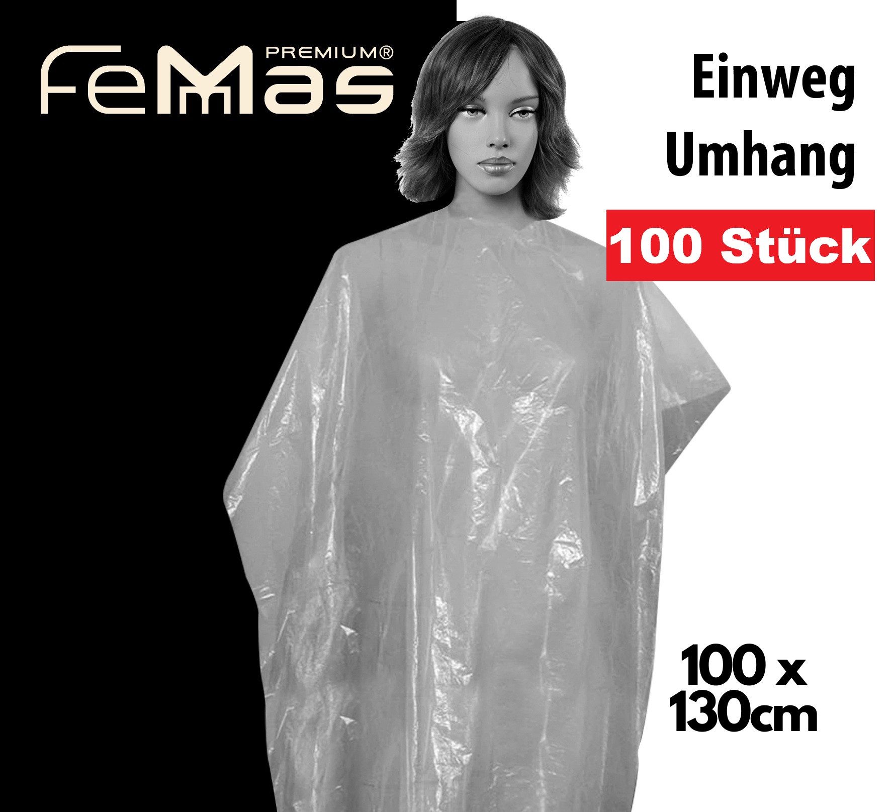 Der Femmas Einwegumhang (100cm x 130cm) bietet optimalen Schutz während Farb- und Stylingbehandlungen und sorgt dafür, dass Kleidung sauber bleibt. Mit einer großzügigen Размер von 100cm x 130cm und einem komfortablen Halsverschluss sind die Umhänge angenehm zu tragen und lassen sich einfach über die Kleidung legen.