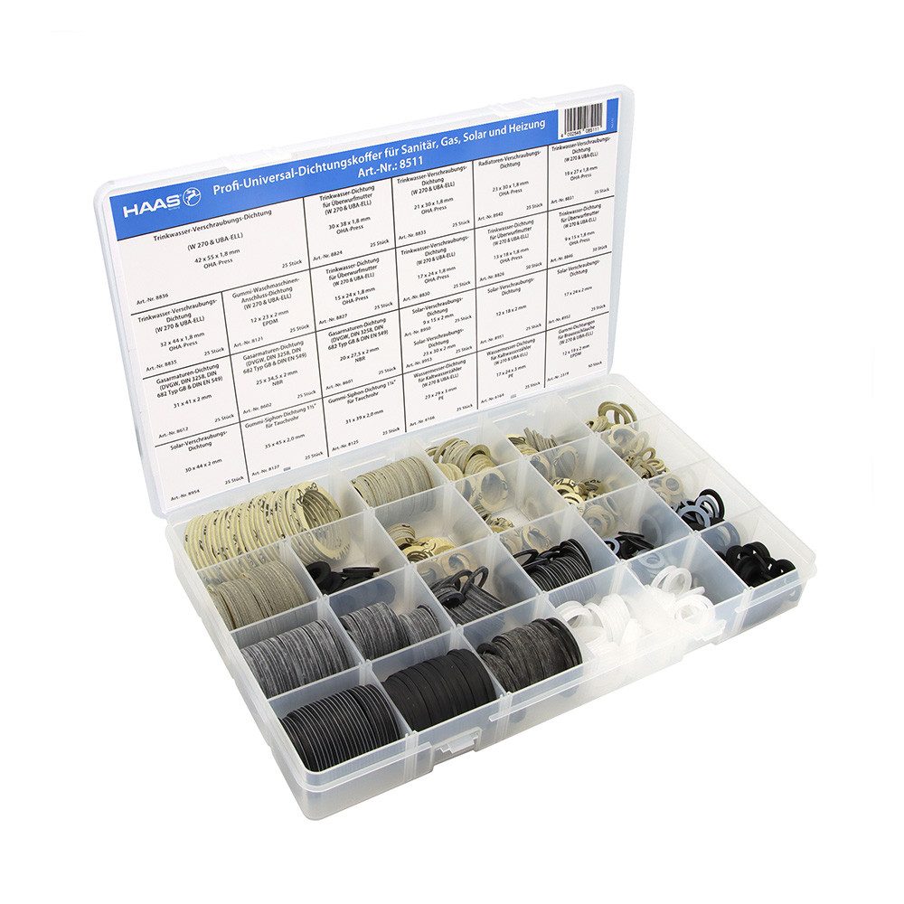 Der Profi-Universal-Dichtungskoffer ist ein praktisches Set für Sanitär, Heizung, Solar und Gas.