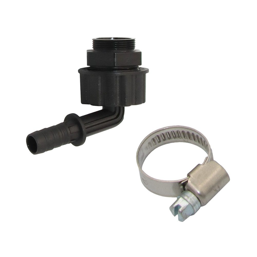 Zapfadapter für Wasserhähne, M22 x ¾" mit einer Schlauchschelle. Kann an Waschbecken- oder Badewannenarmaturen angeschlossen werden.