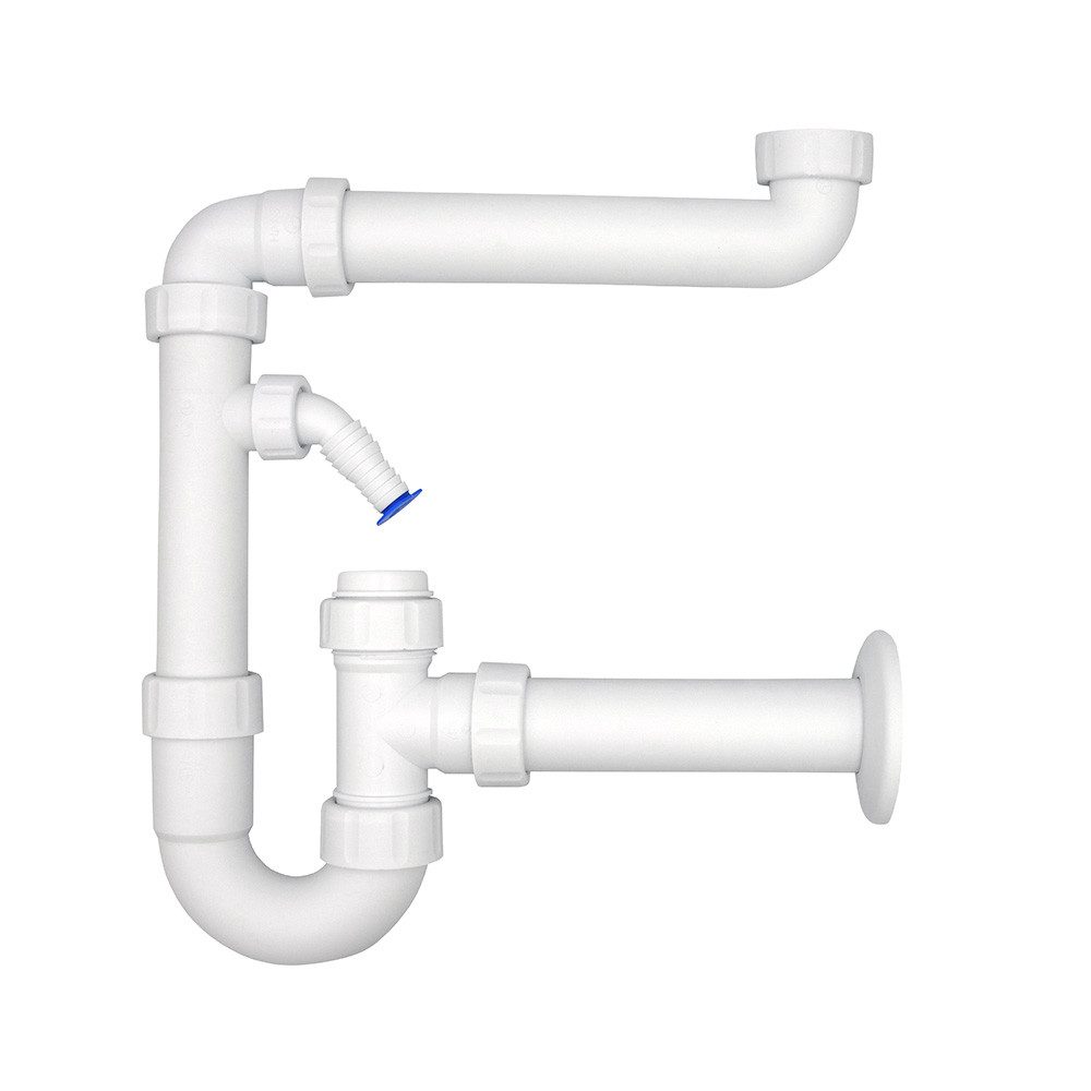 Lieferumfang | PP-Raumsparsiphon 1½" und 1¼" mit einem Geräteanschluss und Reinigungsöffnung |