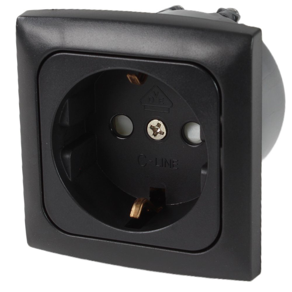 C-Line 230 Volt Schuko Steckdose mit Abdeckrahmen und Berührungsschutzdose in schwarz