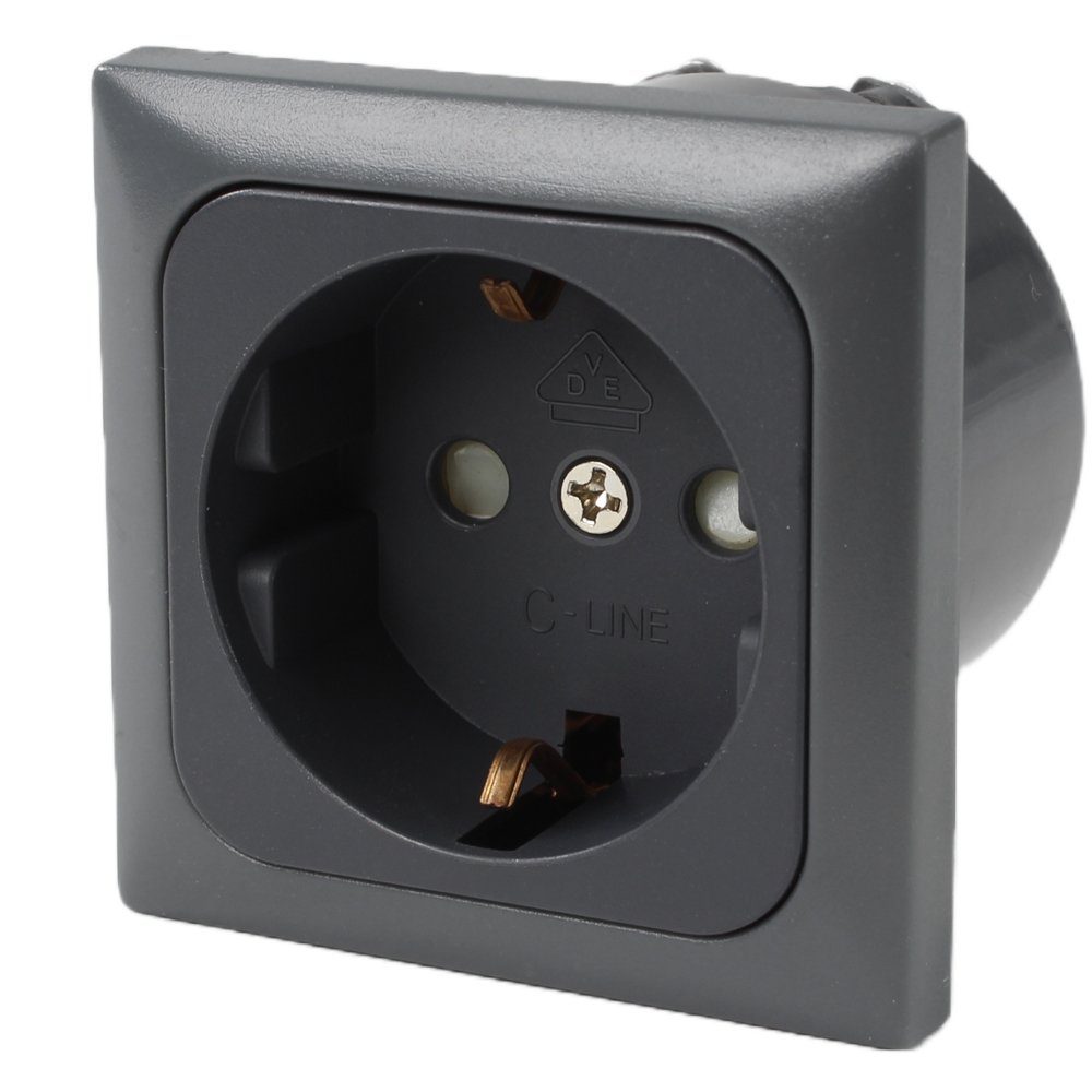 C-Line 230 Volt Schuko Steckdose mit Abdeckrahmen und Berührungsschutzdose in anthrazit