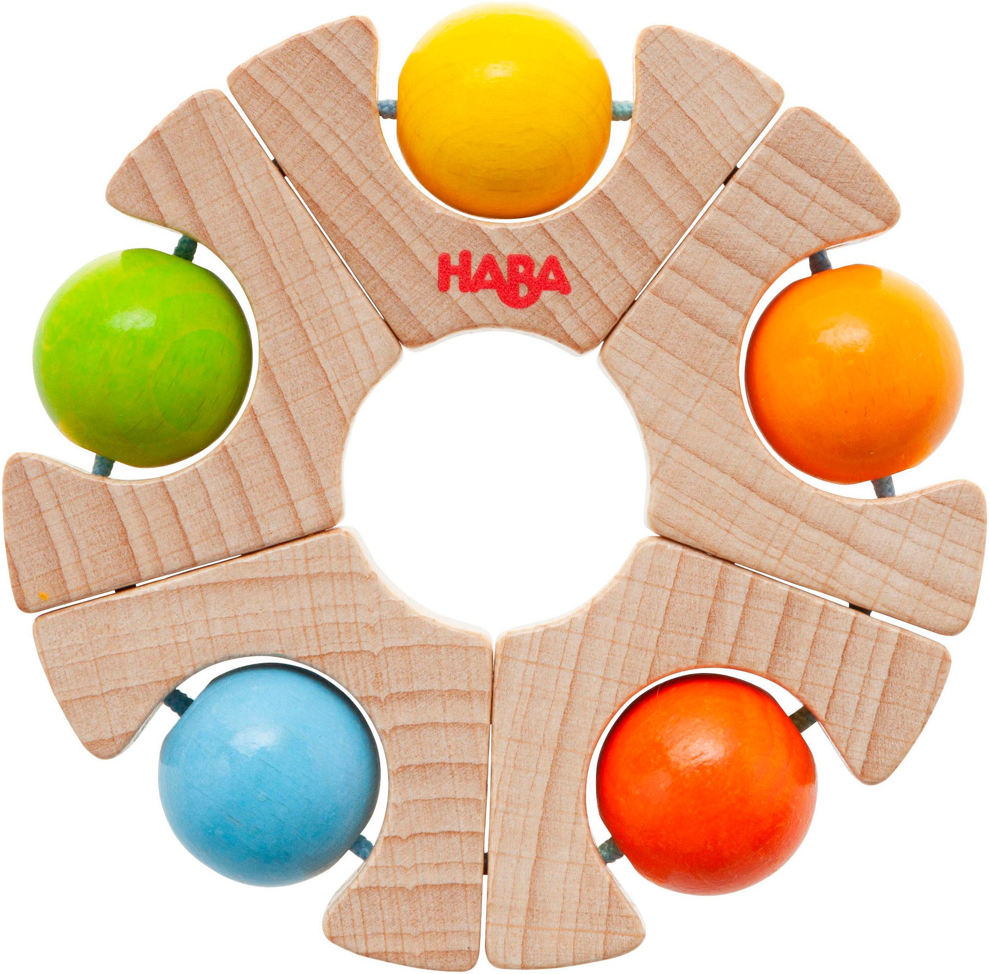 Leuchtende Farben, faszinierende Formen: der Greifling Kugelrad weckt die Neugier kleiner Weltentdecker. Mit fröhlichen Farben und naturbelassenem Buchenholz regt dieses designstarke Holzspielzeug zum Erkunden an. Begeistert probieren Babys ab 6 Monaten aus, wie sich die Kugeln und übrigen Holzelemente bewegen lassen. Размер und Form ist optimal auf kleine Kinderhände abgestimmt. Das handliche Motorikspielzeug sorgt auch Unterwegs mit lustigem Klappern für Abwechslung und beste Unterhaltung. Am Greifling Kugelrad haben kleine Weltentdecker lange Freunde. Spielerisch trainiert das HABA Holzspielzeug Babys Handmotorik und fördert die Wahrnehmung.