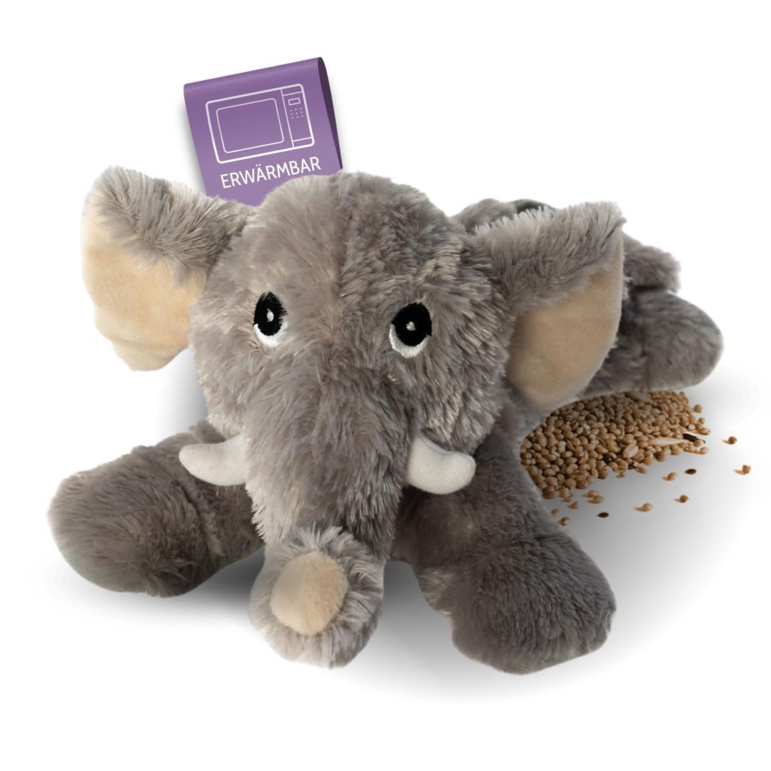 Habibi Plush Wärmetier Elefant Produktinformationen: Material Bezug: Plüsch 100 % Polyester - kuschelig weich Material Füllung: 100% natürlichen Hirsekörner mit Jasmin- und Lavendel-Aromaduft, angereichert mit Lemongras und Vanille Für die Mikrowelle geeignet - in 90 Sekunden warm oder ca. 10 Min./80-100 Grad im Ofen (Umluft ohne Vorheizen) Zum Kühlen geeignet - im Gefrier- oder Kühlschrank Длина ca. 35 cm, Gewicht: ca. 800 gr Habibi Plush für Wärmekissen-Kuscheltier für Groß und Klein Erfahren Sie mit dem Habibi Wärmekissen-Stofftier , dem idealen Begleiter für Kinder und Erwachsene, kuschelige Wärme und wohltuende Entspannung. Dieses Plüschtier, vereint die Behaglichkeit eines Kuscheltiers mit den praktischen Vorzügen eines Wärmekissens. Die mit Lavendel, Jasmin, Lemongras und Vanille verfeinerte Hirsefüllung aus 100 % Naturmaterial sorgt für eine wohltuende Wärme und einen entspannenden Duft, der Körper und Geist Ruhe schenkt. Das Wärmen gelingt vor allem leicht und zügig: Ein Mikrowellenaufenthalt von 90 Sekunden oder ein Backofenaufenthalt von 10 Minuten genügen, um das Wärmeplüschtier auf eine angenehme Temperatur zu bringen. Das praktische Gewicht macht das Körnerkissen-Stofftier vielseitig verwendbar – perfekt bei Bauchschmerzen, zur Muskelentspannung oder als Einschlafhilfe für Kinder.Es kann auch zum Kühlen verwendet werden und wird nun vom Wärmetier zum Kühltier. Nach ca. 30 Minuten im Kühl- oder Gefrierschrank können Prellungen oder Zerrungen gelindert werden. Dieses mit Wärme funktionierende Kuscheltier stellt eine perfekte Alternative zu herkömmlichen Wärmflaschen dar, da es nicht nötig ist, heißes Wasser einzufüllen. Das Hirsekörnerkissen eignet sich für Babys, Kinder und Erwachsene. Das Stofftier hilft bei Erkältungen, Bauchzwicken oder zur Stressreduktion. Besorgen Sie sich jetzt das Habibi Wärmekuscheltier– die ideale Kombination aus Wärmekissen, Kuscheltier und Ihrem persönlichen Wohlfühlbegleiter!