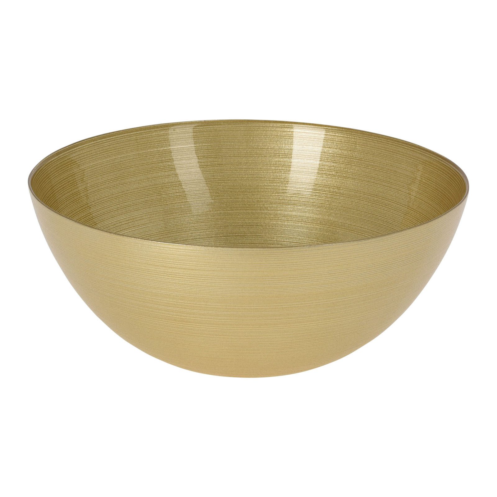 Diese Glasschüssel besticht durch ihr elegantes, goldfarbenes Design und die zarten, horizontalen Streifen, die ein effektvolles Ganzes bilden.