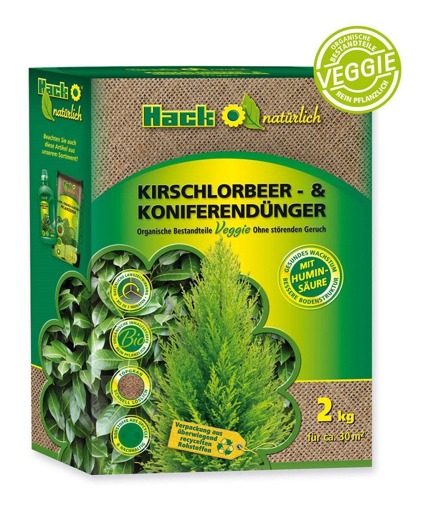 HACK-Bio Kirschlorbeer- & Koniferendünger ist ein organischer Spezialdünger, welcher in seiner Zusammensetzung speziell auf die Bedürfnisse von Kirschlorbeeren bzw. alle Immergrünpflanzen wie Koniferen, Tannen usw. abgestimmt ist. Zusätzlich enthält der Dünger Huminsäuren. Diese stimulieren das Wachstum Ihrer Pflanzen, haben einen positiven Einfluss auf den Nährstoffhaushalt im Boden und beeinflussen die Vermehrung erwünschter Bodenmikroorganismen.