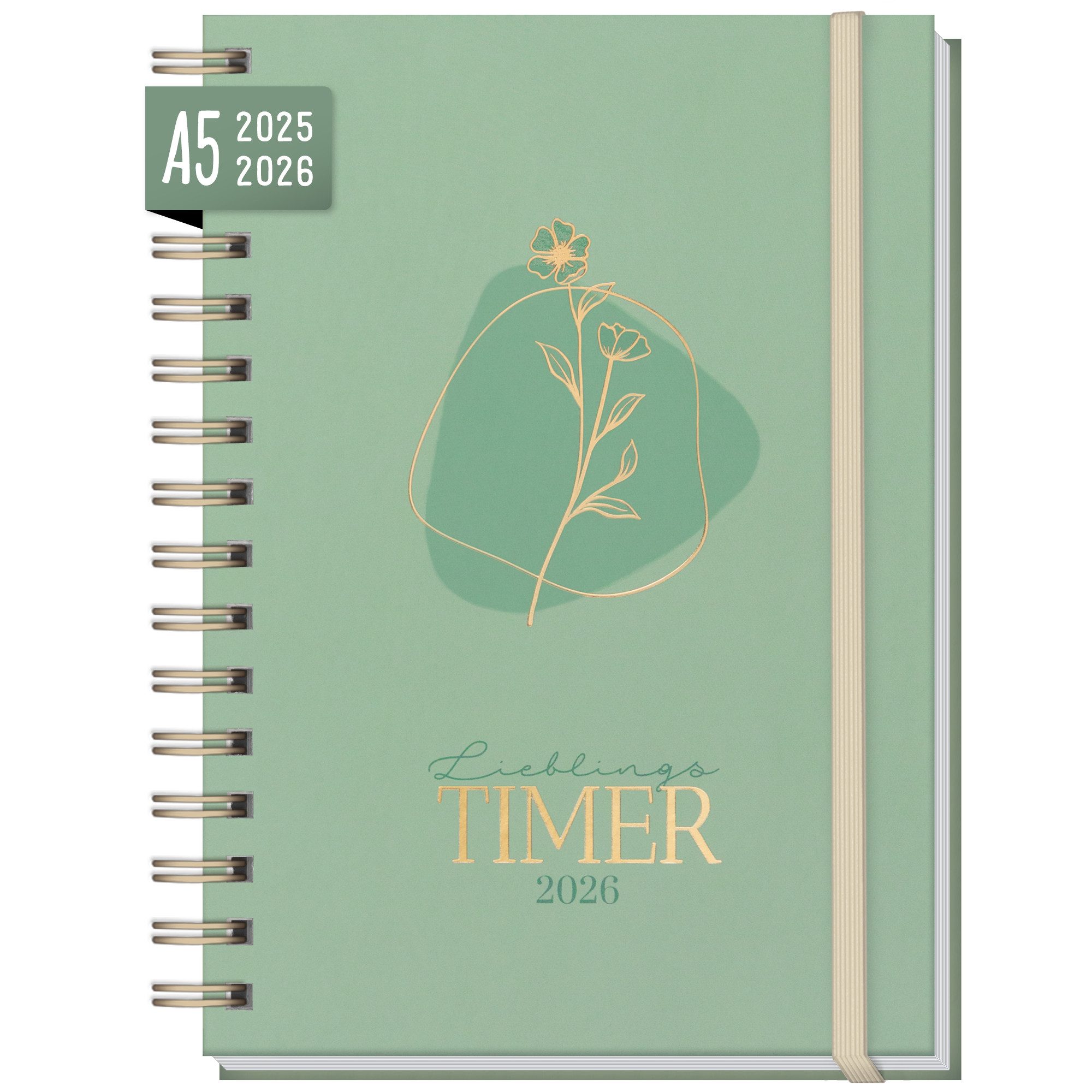 Lieblings-Timer Ringbuch-Kalender von August 2025 bis Dezember 2026 mit 1 Woche auf 2 Seiten im zarten Design & Dot-Lineatur für Notizen & Ideen jeder Art.