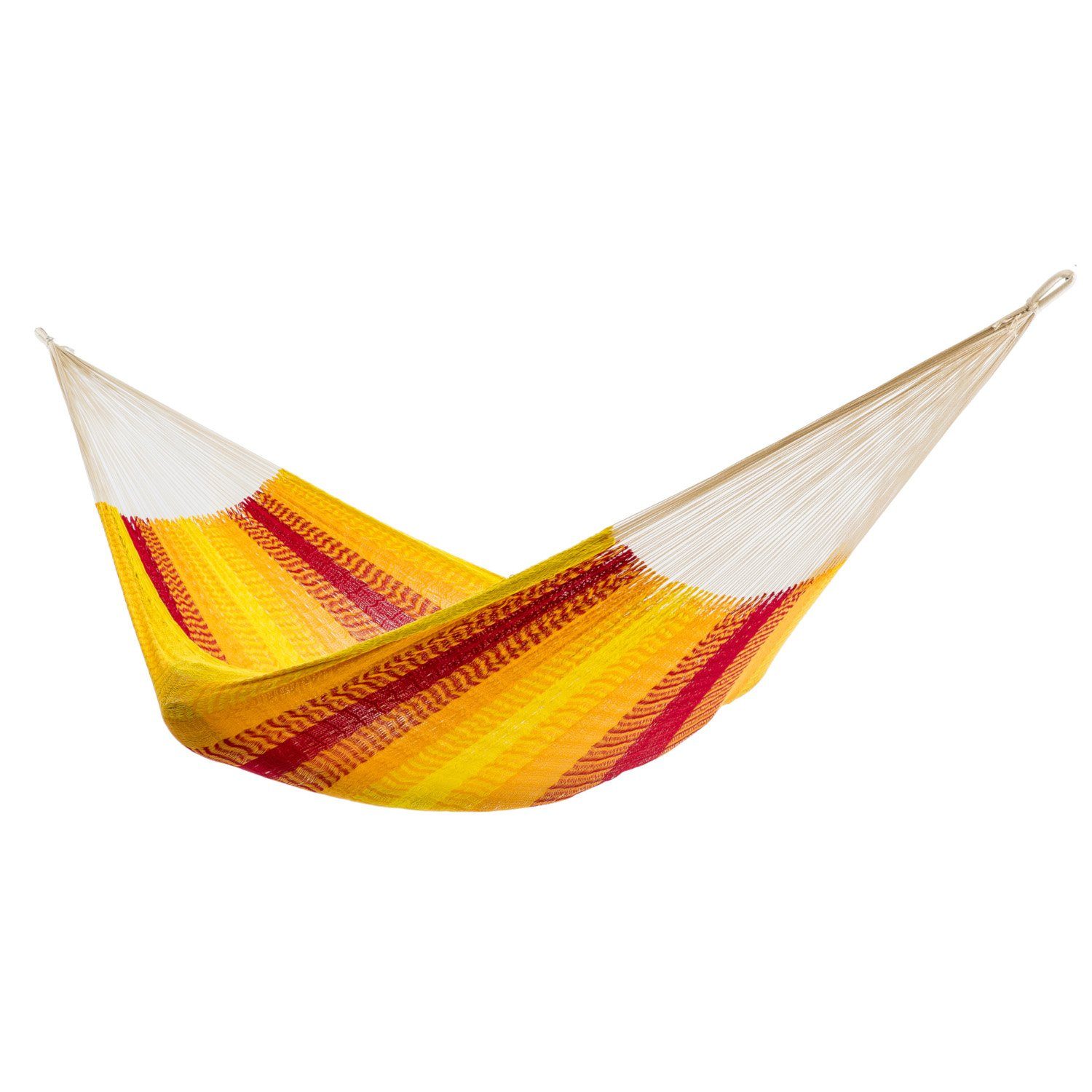 Die Netzhängematte MAYA in XL bietet Platz für die ganze Familie. In Mittelamerika sind die Netzhängematten weit verbreitet, weil sie so anschmiegsam sind und an heißen Tagen eine luftige Brise durch lassen. Sie wird aus vielen reißfesten Baumwollschnüren in traditioneller Handarbeit geflochten. Das feine Netz passt sich wunderbar weich dem Körper an und bietet so einen unschlagbaren Liegekomfort. Das macht diese Netzhängematte zu der perfekten Schlafhängematte – für ein Nickerchen, oder die ganze Nacht. Dabei legt man sich am besten diagonal hinein, wie es auch die Menschen in Mittelamerika tun. So liegst Du besonders rückenschonen.