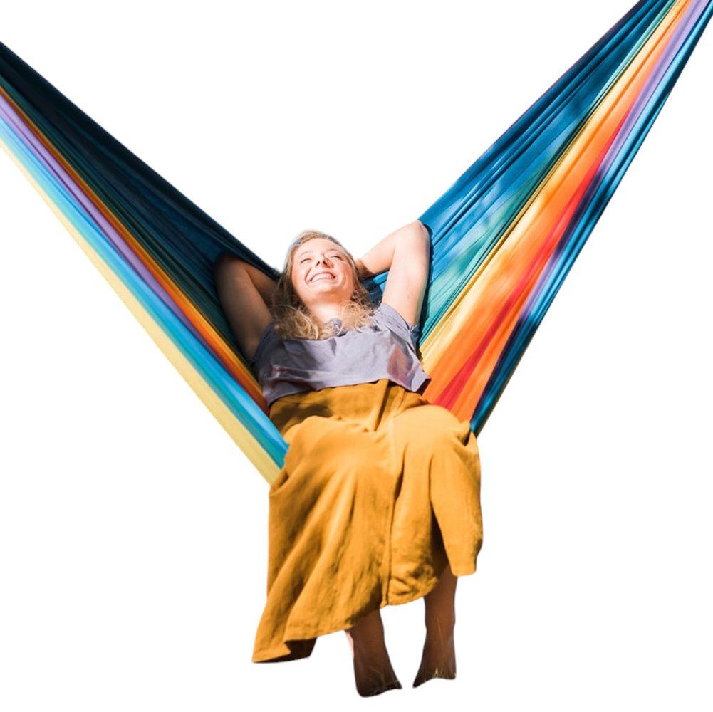 Hergestellt von HängemattenGlück – ein Name der Programm sein soll; Programm für jeden, der gern in einer Hängematte schaukelt und entspannt; Programm aber auch für all jene, die an der Produktion dieses Wohlfühlproduktes beteiligt sind und die ihren Lebensunterhalt damit verdienen. HängemattenGlück möchte gewährleisten, dass bei der Herstellung seiner Hängematten und Hängesitze die Gesundheit von Mensch und Natur erhalten werden und dass für alle Mitglieder der Produktionskette faire Arbeitsbedingungen und ein fairer Lohn sichergestellt sind. Darum werden die Produkte von HängemattenGlück ausschließlich aus Baumwolle aus kontrolliert-biologischem Anbau hergestellt. Und darum haben die Produkte von HängemattenGlück ein GOTS-Siegel (Global Organic Textile Standard) CERES-0271, damit die Herstellung auch dort, wo der Hersteller nicht persönlich vor Ort sein kann, nachweislich fair bleibt.Liegefläche: 260 x 200cm