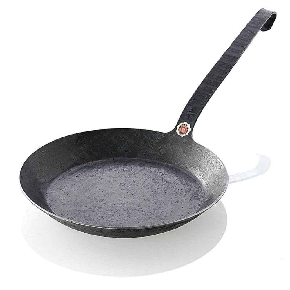 Diese superhoch erhitzbaren, handgeschmiedeten Pfannen in perfekter Profiqualität entwickeln durch ihre Wärmeleitfähigkeit (im Gegensatz zu üblichen, gewalzten Eisenpfannen) einzigartige Brateigenschaften. Schnell und genau dosiert geben sie die richtige Hitze sofort an das Bratgut weiter. Wunderbar gelingen darin krosse Bratkartoffeln, knusprige Rösti, knackig angebratenes Gemüse und superzartes Fleisch. Nach dem Einbraten wird die Pfanne dunkel und durch ständigen Gebrauch immer besser. Perfekt sind ihre Brateigenschaften, wenn sie tiefschwarz geworden ist. Die absolut kratz- und schnittfesten Pfannen werden in einer 150 Jahre alten Schmiede aus einem Stück von Hand freiform-warmgeschmiedet. Für alle Herdarten geeignet. Aufgrund der aufwendigen Handarbeit kann es zu Lieferverzögerungen kommen.