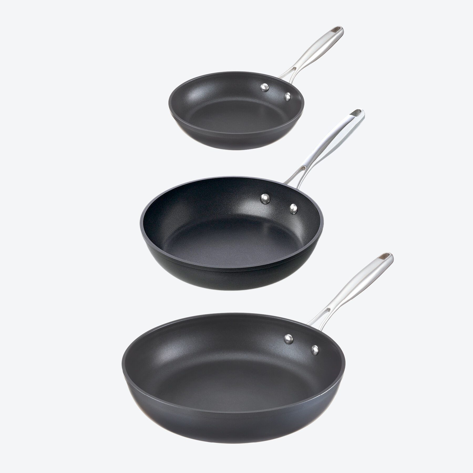Diese Hochraum-Pfannen fertigen wir nach unseren hohen Standards mit besonderem Anspruch an küchentechnische Funktionalität. Sie entstehen aus sorgfältig komprimiertem Aluminium mit exzellenten Wärmeleiteigenschaften. In einem aufwändigen Verfahren wird seine molekulare Struktur durch Hartanodisieren beträchtlich gestärkt. Das Ergebnis: Die Pfannen sind doppelt so hart wie Edelstahl. Ihr induktionsfähiger, 4 mm starker Aluminium- Edelstahlboden geht übergangslos in dünnere Seitenwände über. So bleiben die Pfannen angenehm leicht. Für höchste Festigkeit sorgt der verstärkte obere Rand. Unauflöslich mit der Pfanne verbunden ist die 3-fache, dauerhafte Teflon®-Platinum-Antihaftversiegelung höchster Güteklasse. Professionelle, arbeitsgerecht geformte Edelstahl-Hohlgriffe werden auf dem Herd nie zu heiß. Beim harten Dauertest in der Gastronomie haben sich unsere Pfannen mehr als bewährt.