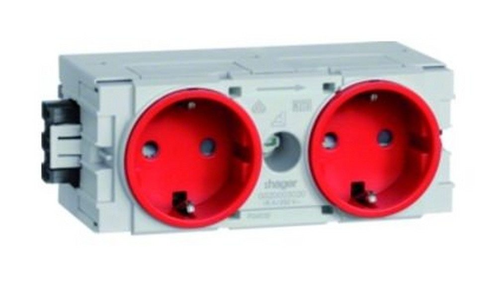Hager Steckdose 2fach rot matt Geräteeinbaukanal horizontal/vertikal IP20 Zentralplatte
