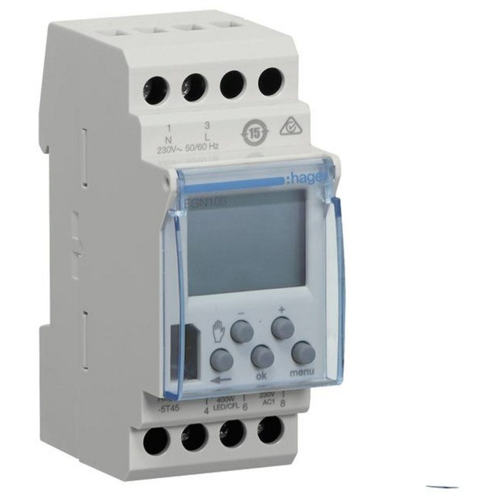 Wochenschaltuhr, 1 Wechsler, 16A, 2 PLE, Digital. Digitale Wochenschaltuhr 1-Kanal mit Display zur zeitabhängigen Steuerung mit Wechselkontakt, App Programmierung möglich. Programmierung am Gerät: Uhrzeit und Datum (werkseitig eingestellt), automatische Sommer-/Winterzeitumstellung, temporäre und permanente Ausnahmesteuerung On/Off, sperrbare Tastatur über Tastenkombination. Balkenanzeige zur schnellen Erkennung der Tagesprogrammierung. Programmierung ohne Netzspannung über integrierte Gangreserve (ca. 5 Jahre) möglich. Hinweis: Bluetooth Programmierung über App wenn der Schlüssel in der Uhr steckt (Schlüssel nicht enthalten). Schlüssel Kommunikationsprotokoll ab Version Bluetooth 4.2