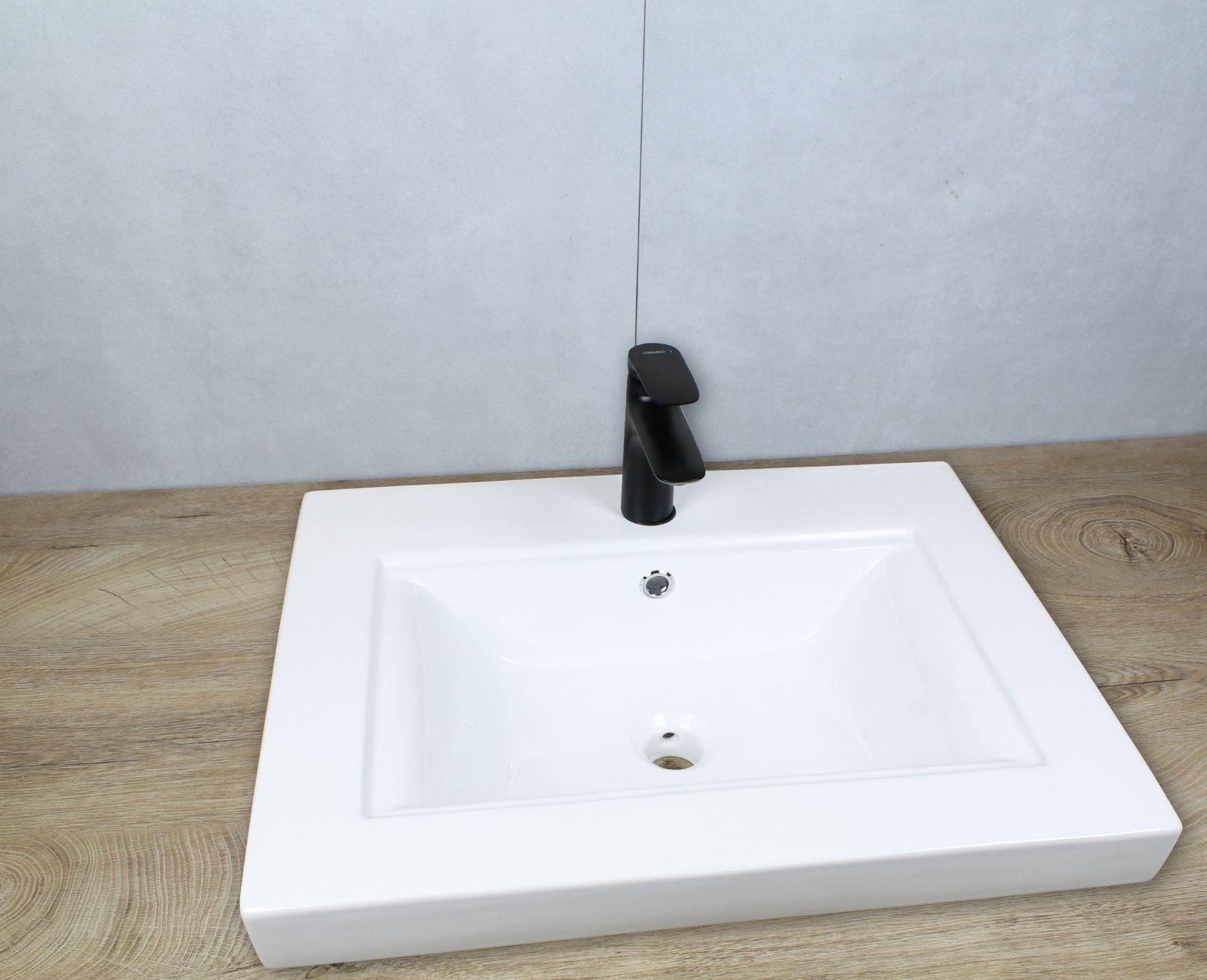1x Keramik Einbauwaschbecken 605 x 465 x 160 mm weiß mit Überlauf