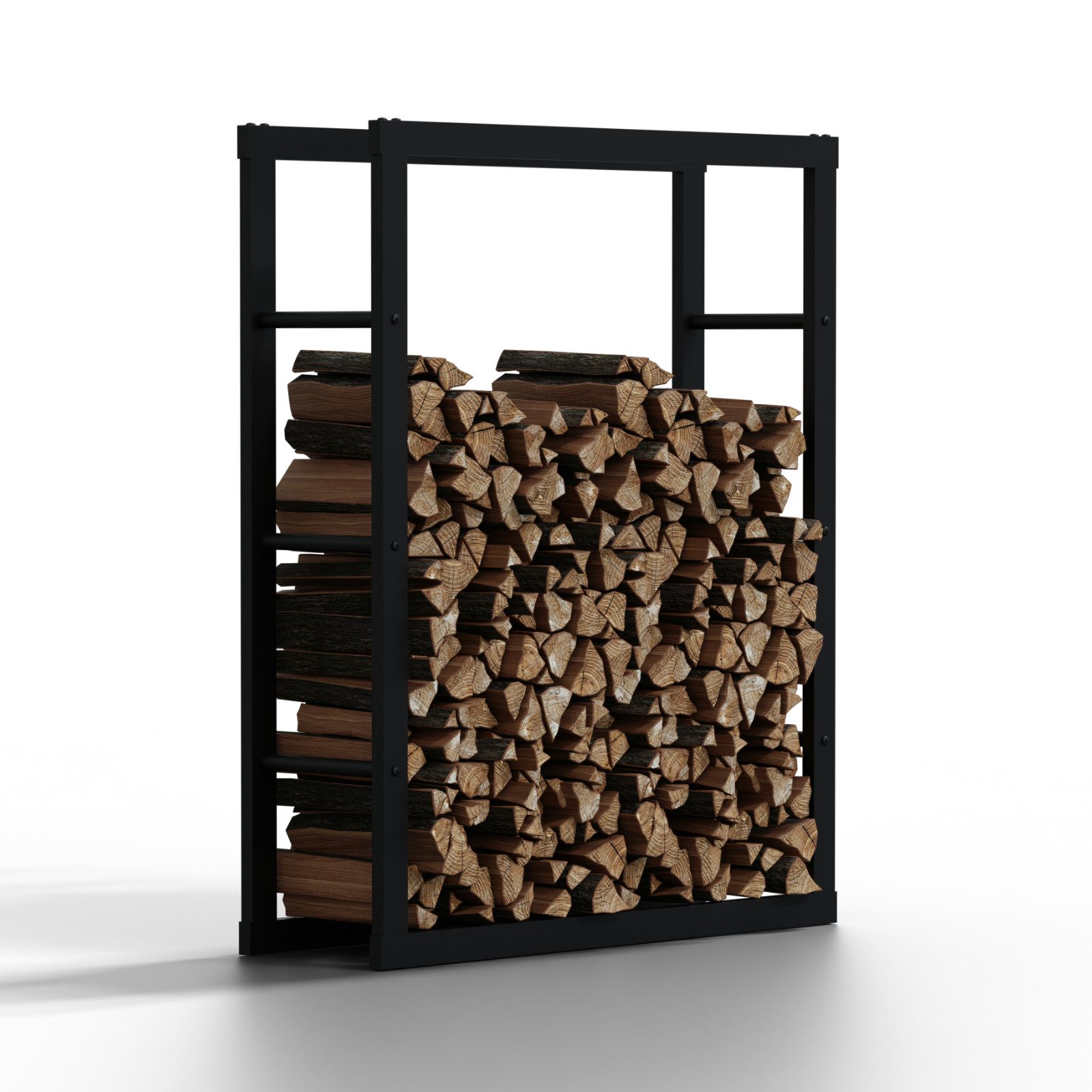 Das elegante, schwarze Design unseres Feuerholzregals fügt sich nahtlos in jede Einrichtung ein. Es ist nicht nur ein praktisches Lagerungselement, sondern auch ein stilvolles Accessoire für Ihr Wohnzimmer oder Ihren Außenbereich. Das minimalistische Design macht es zu einem echten Hingucker.