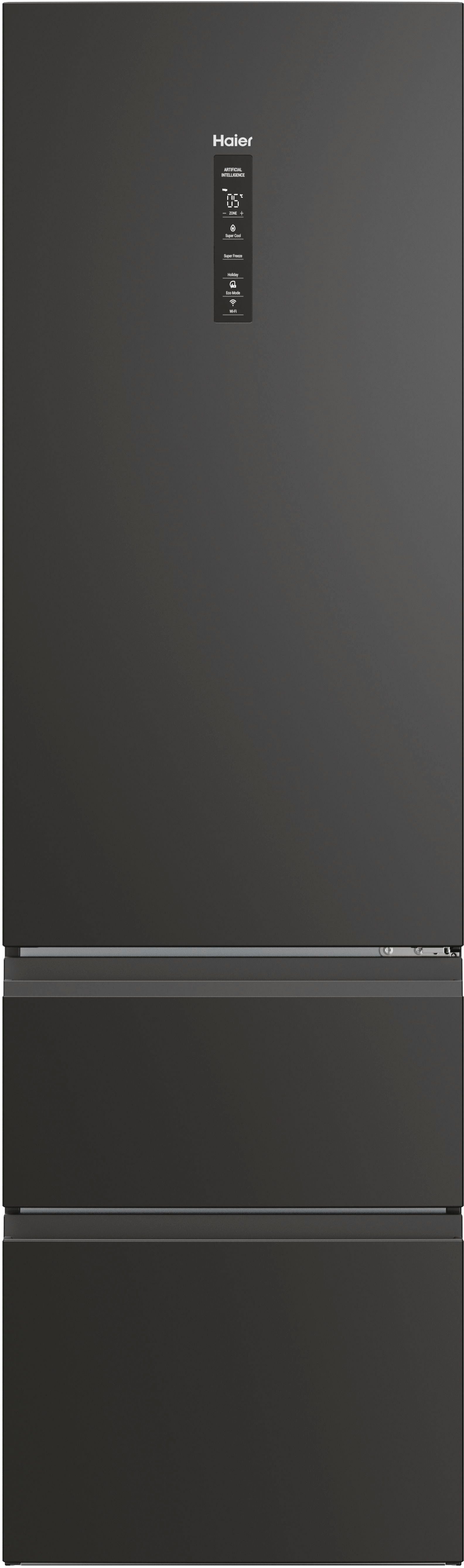 Die »HTW5620DNPT« ist eine freistehende Kühl- und Gefrierkombination von Haier. Das Gerät bietet ausreichend Platz für deinen Einkauf durch seine Maße von 59,5 x 205 x 66,7 cm (B/H/T) und das Gefriervolumen von 125 l und Kühlvolumen von 289 l. Das Modell arbeitet mit einem Betriebsgeräusch von 35 dB. Das Modell besitzt zwei Gefrierschubladen und zwei Gemüseschubladen. Die Temperatur im Gerät wird auf dem auf der Tür installierten Display angezeigt. Die Kühl- und Gefrierkombination hat drei Ablageflächen aus Glas, die viel Platz für Lebensmittel bieten. Schnell griffbereit sind Lebensmittel in den sechs Türablagen. Durch die Schnellgefrier-Funktion lassen sich Lebensmittel besonders schnell kühlen und einfrieren. Bei offen stehender Tür meldet dies die Kühl- und Gefrierkombination mit einem akustischen Warnsignal. Eine perfekte Übersichtlichkeit hat man außerdem durch die LED-Innenbeleuchtung. Wer auf der Suche ist nach einem Modell, das genug Platz für Nahrungsmittel bietet, der trifft mit der »HTW5620DNPT« von Haier eine gute Wahl.