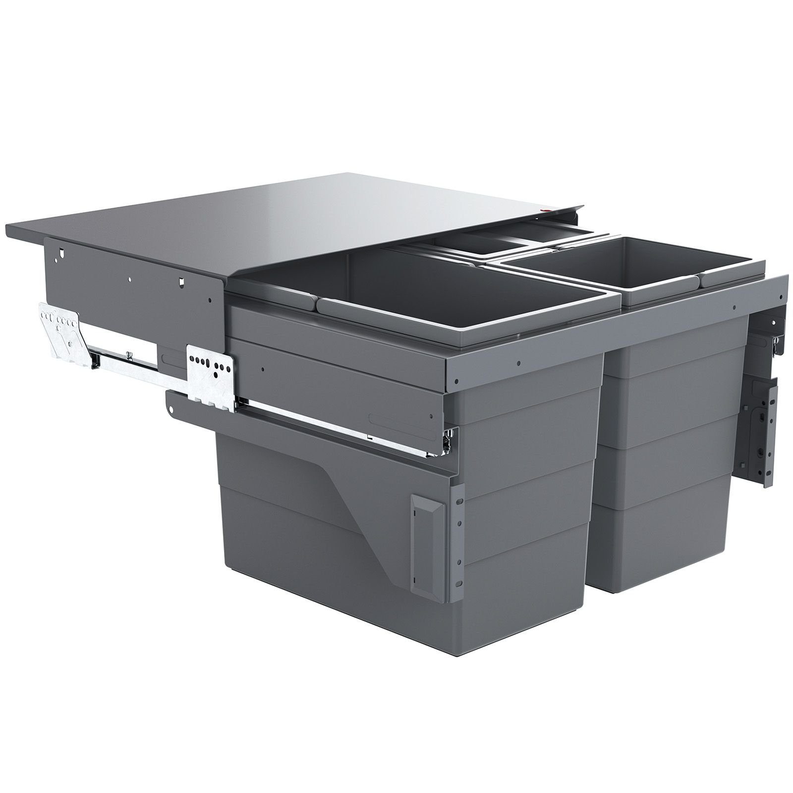 Abfalltrennsystem für Schränke mit 600 mm Breite mit Frontauszug / Auszugsschienen: abgedeckter, gedämpfter Selbsteinzug mit synchronisiertem Überauszug