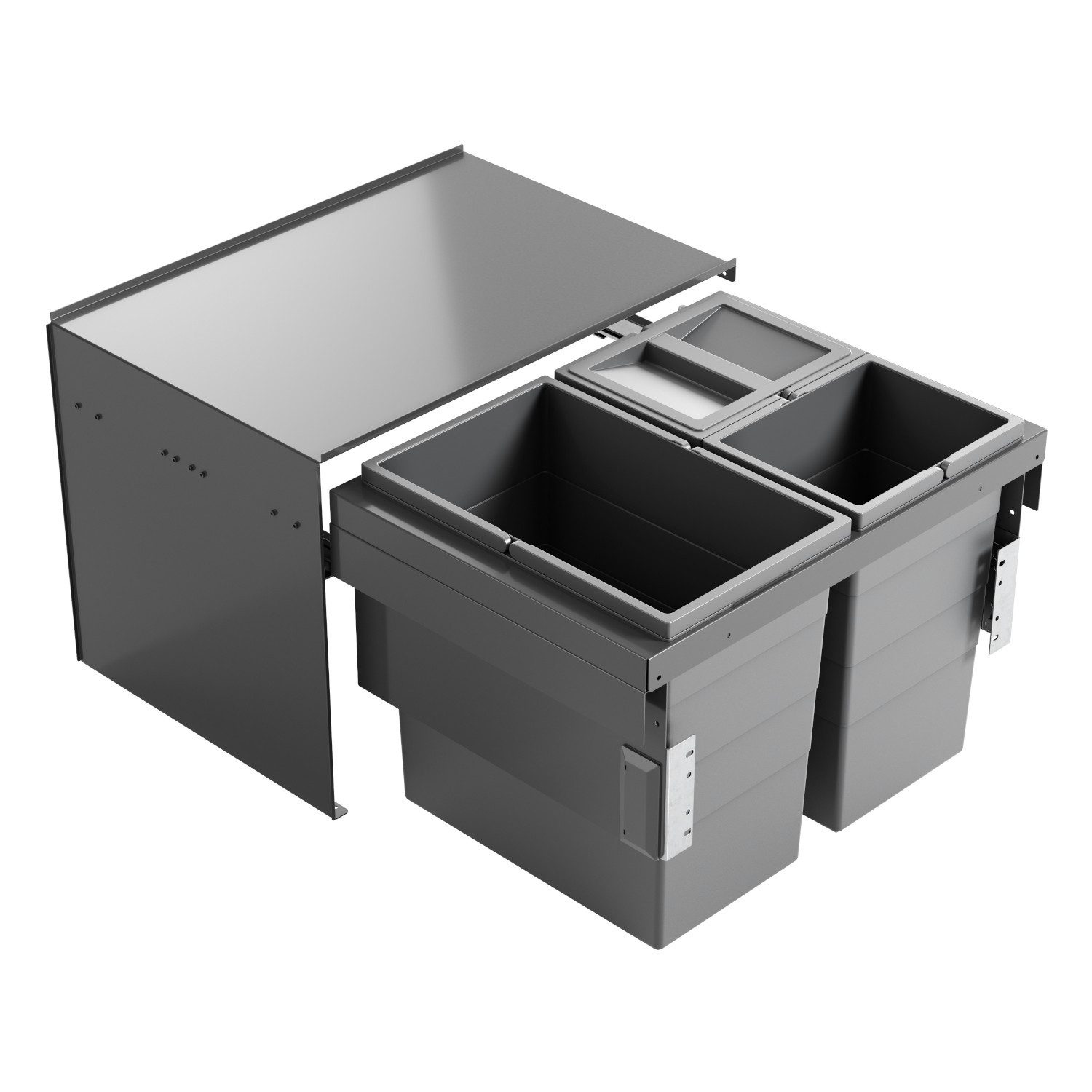 Der Hailo Cargo Aqua ist das passende Abfalltrennsystem für Frontauszugsschränke, bei denen das Abfalltrennsystem außermittig montiert werden muss, um seitlich Platz für einen Wasseraufbereiter zu schaffen. Dank des stabilen Metallgehäuses, benötigt der Cargo Aqua lediglich eine Seite des Unterschrankes zur Anbindung der Auszugsschiene, während das Stahlblechgehäuse, frei stehend im Raum, als Gegenseite für die zweite Schienenanbindung dient. Somit ist es möglich, bei voll funktionstüchtigem Abfallauszug den seitlichen Raum im Schrank für einen Wasseraufbereiter, Wasserspender oder ähnlichem freizuhalten. Das Abfalltrennsystem findet Einsatz in 600mm, 750mm und 900mm breiten Unterschränken und kann je nach Bedarf links oder rechts im Schrank verbaut werden. Die passende Frontanbindungsbeschläge liegen der Lieferung bei.