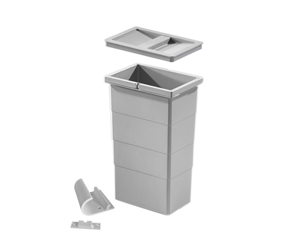 Um Verschiedenes zu verstauen oder aber den Abfall zu entsorgen, bietet sich dieses Eimer-Anbau-Set an. Es besteht aus einem 10 Liter fassenden Eimer inclusive Deckel. Mit Hilfe der Wandbefestigung kann der Eimer beliebig - an der Wand, im Möbel oder wo auch immer gewünscht - befestigt werden. Für die saubere Abfallentsorgung hält die Aufnahme, versteckt unter dem Kunststoffeimer, ein Vorratsfach für die Müllbeutelrolle bereit. Mit einem Handgriff ist der Hailo Eimer aus den Haltevorrichtung entnehmbar.
