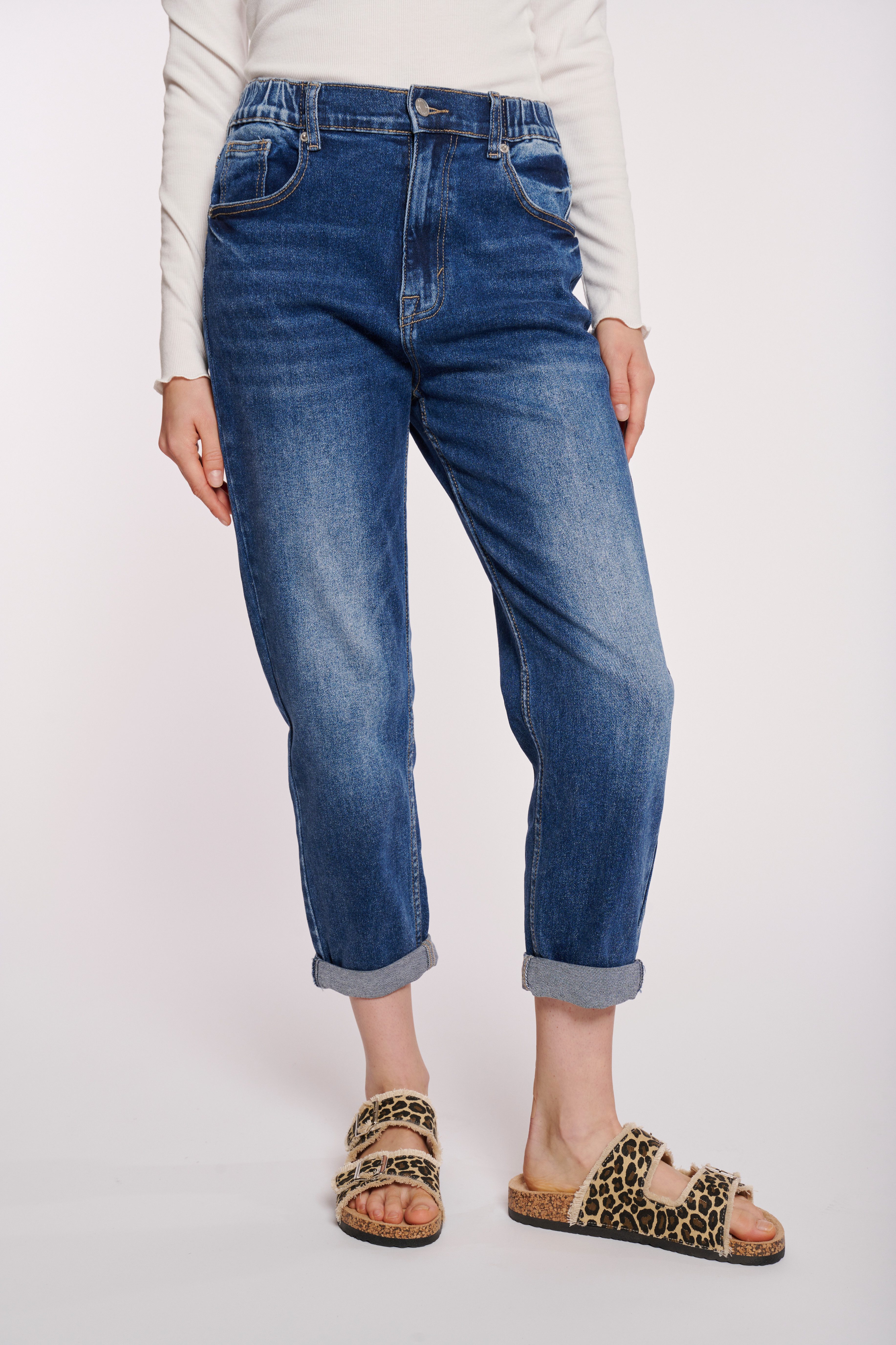 Das Material der Damen-Jeans ist elastisch. So sitzt sie auch bequem, wenn du einige Stunden unterwegs bist. Das Material ist widerstandsfähig und macht die Hose pflegeleicht.
