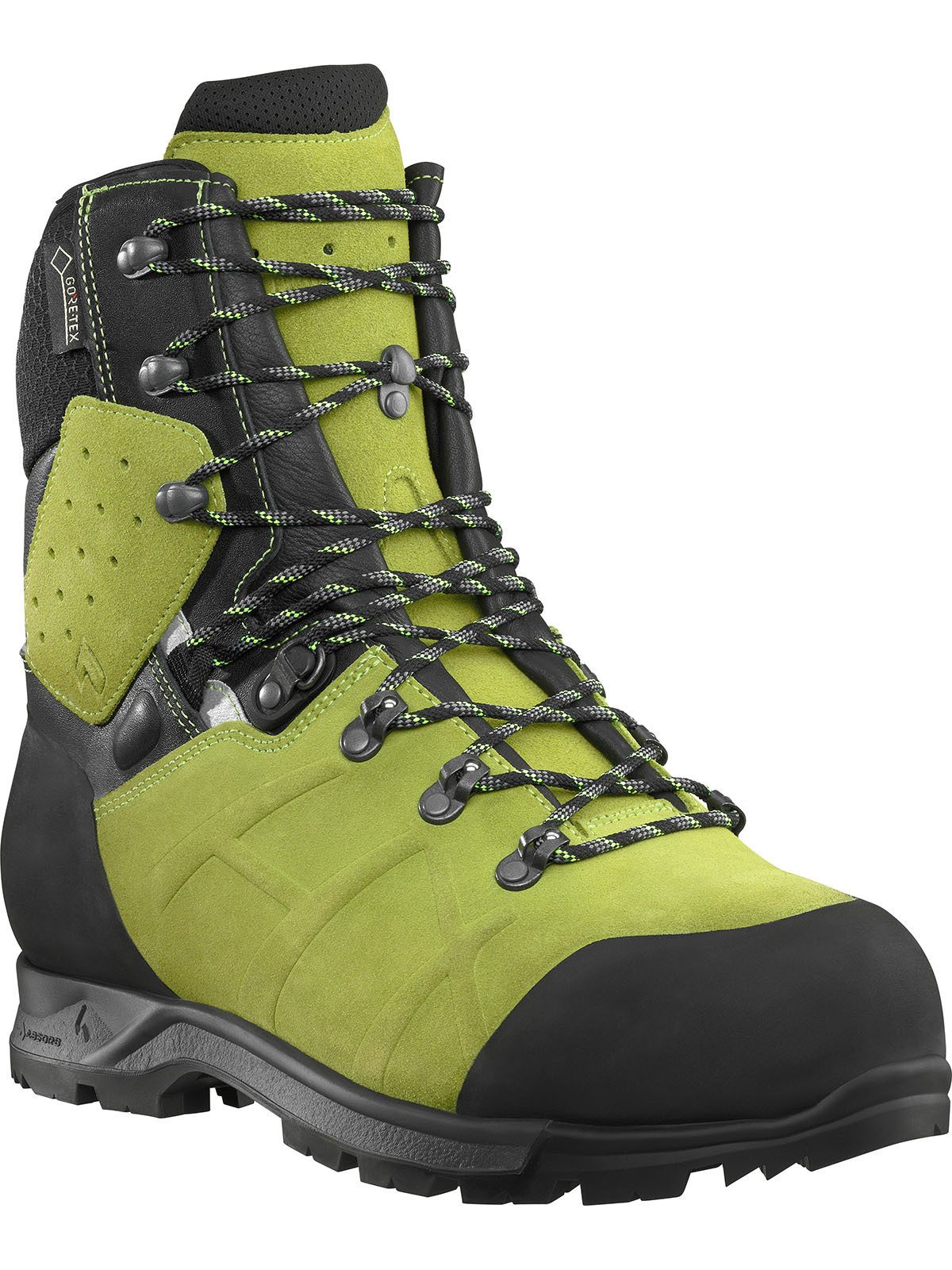 Das HAIX® Climate System nutzt die Pumpbewegung, die beim Gehen entsteht und transportiert Feuchtigkeit zu den Ventilationsöffnungen an Schaft und Zunge. Metall-Spikes zum Eindrehen in die Schuhsohle sorgen für zusätzlichen Halt und verhindern das Abrutschen auf Ästen und gefällten Baumstämmen. Schnürsystem mit Leichtlaufschnürelementen, keine seitlichen Nähte, randstabile Sohle, Spitzen- und Fersenschutz aus Gummi für eine längere Lebensdauer, umlaufender Gummirandstreifen zur Stabilisierung - Schutz vor Steinen, Stacheln, Anziehschlaufe, usw.