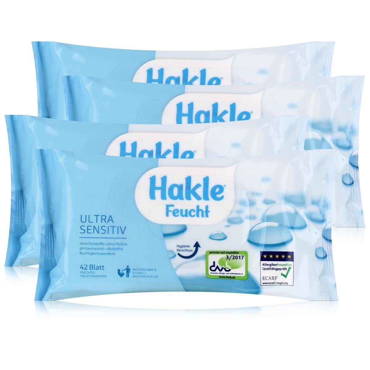 ;Im Lieferumfang enthalten: Hakle Feucht Ultra Sensitiv- feuchtes Toilettenpapier 42 Blatt ; 4er PackInhaltsstoffe | Aqua, Propylene Glycol, Panthenol, Coco-Glucoside, Octyldodecanol, Dicaprylyl Carbonate, Polyglyceryl-4 Caprate, Citric Acid, Sodium Hydroxide, Phenoxyethanol, Benzoic Acid, Dehydroacetic Acid |